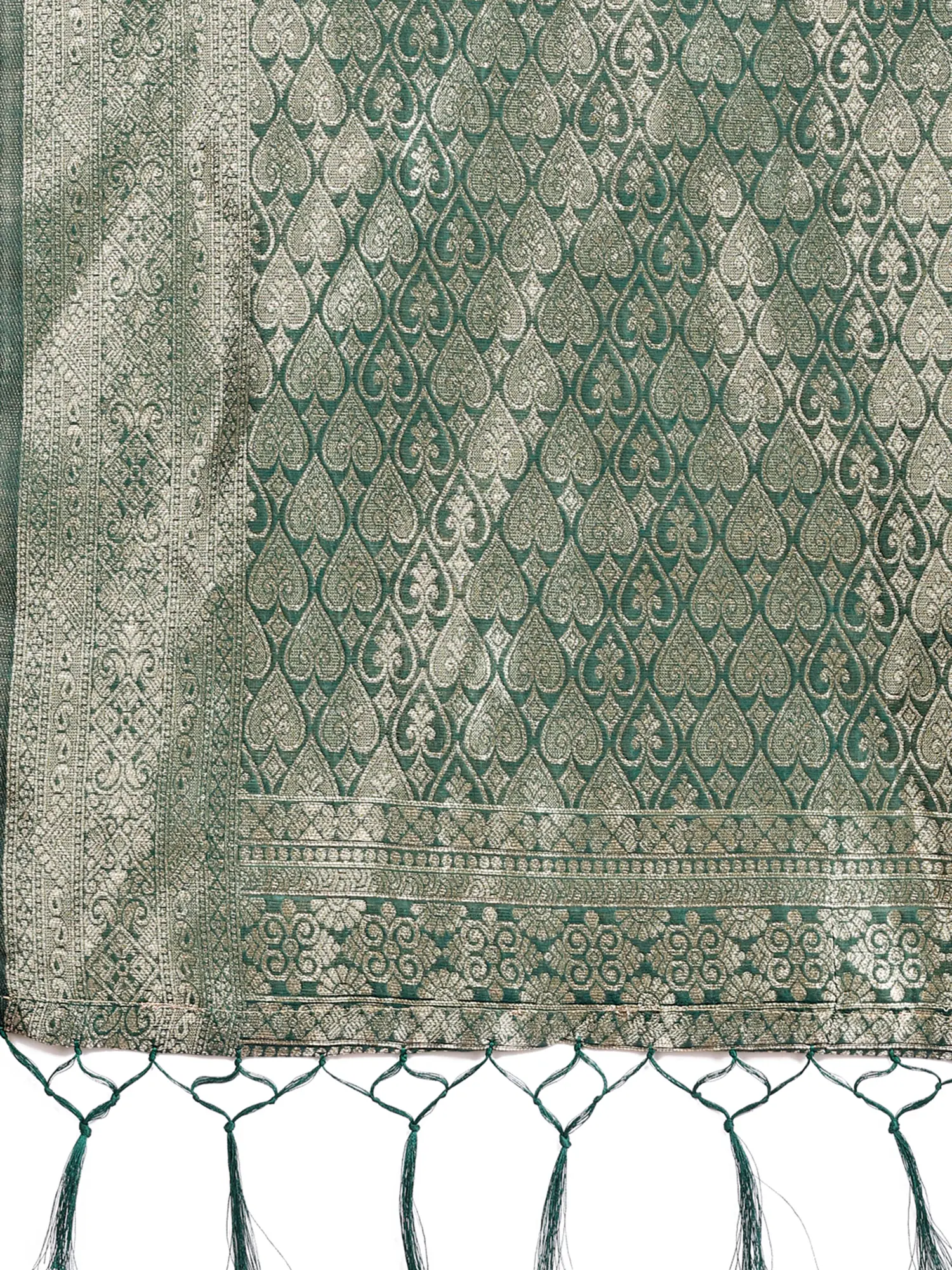 Geometric Pattern Kanjivaram Silk Heavy Jari Weaving & Printed Saree With Tassels Pallu