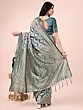 Cool-Blue Geometric Motifs Print Semi Linen Attractive Party Wear Saree With Tassels Pallu