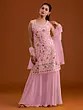 Pink Designer Georgette Sharara Suit With Ornate Heavy Thread Sequin Embroidery For Standout Festive And Wedding Wear
