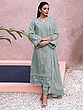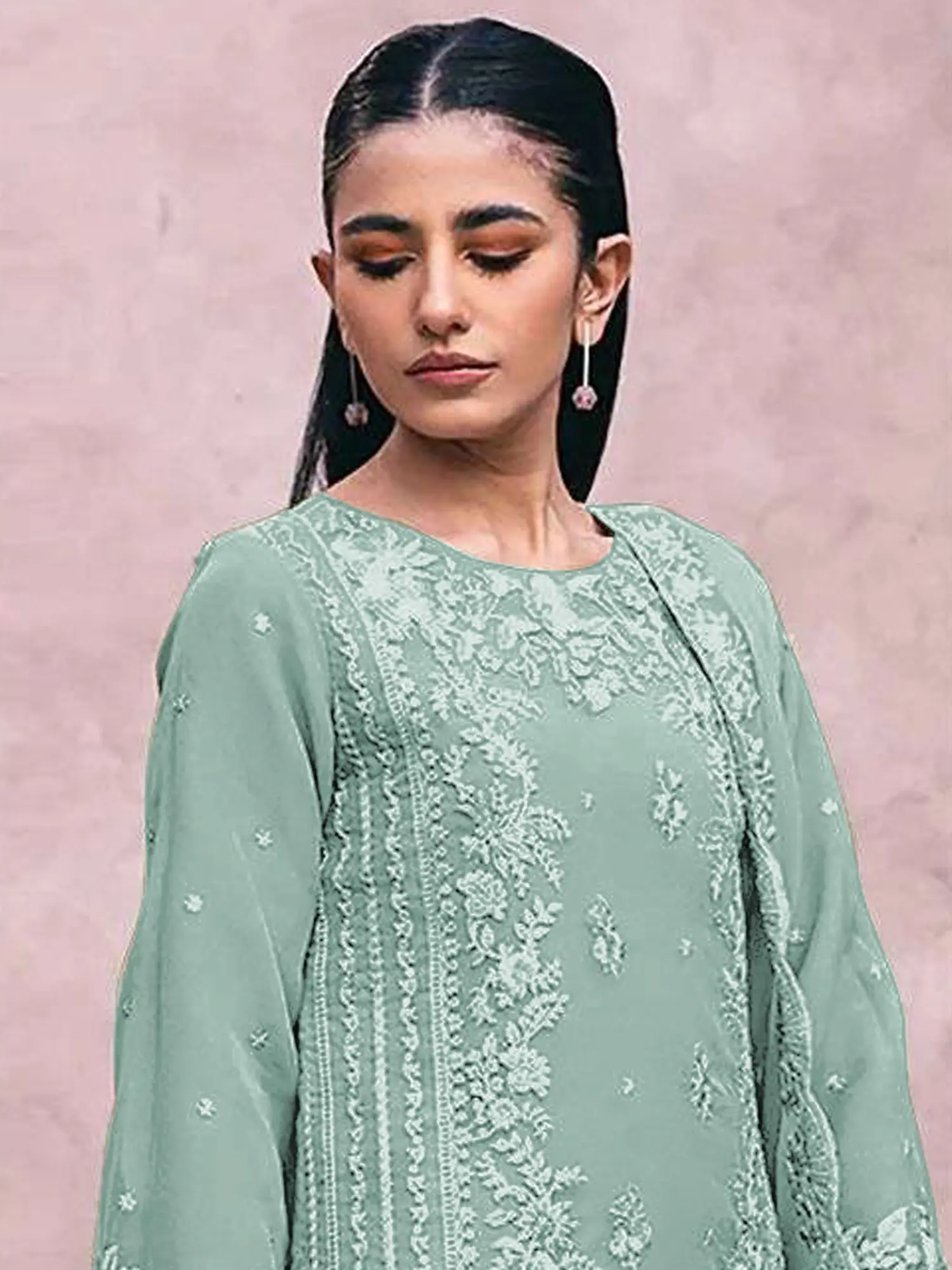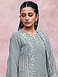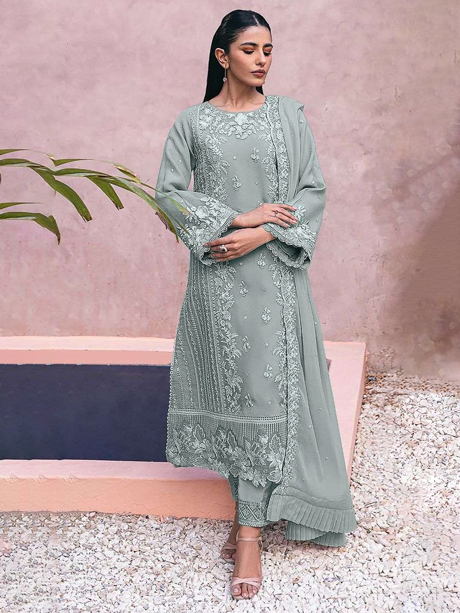 Bleached-Cedar Designer Embroidery Work Attractive Party Wear Kurta Set With Striped Dupatta