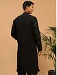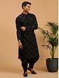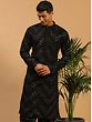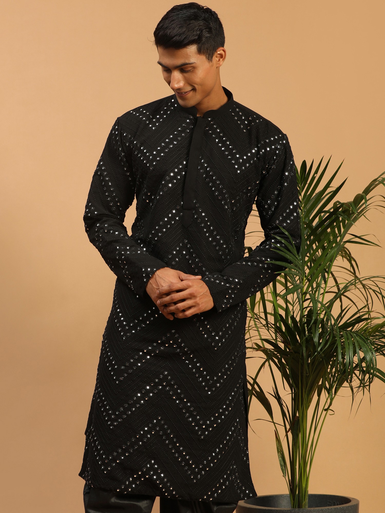 The use of mirrors and shiny decorations was only restricted to women. Later the style was infused into men's wear in the form of ethnic wear. This Georgette Kurta features a captivating Mirror Work Chevron Pattern and is an epitome of self-expression that goes beyond gender stereotypes. The lightweight georgette fabric ensures comfort, while the intricate mirror work in a chevron pattern adds a touch of glamour and ethnic allure. Ideal for festive gatherings or special occasions, this kurta effortlessly blends traditional craftsmanship with contemporary design. The mirror work detailing creates a visual appeal that is both distinctive and eye-catching.