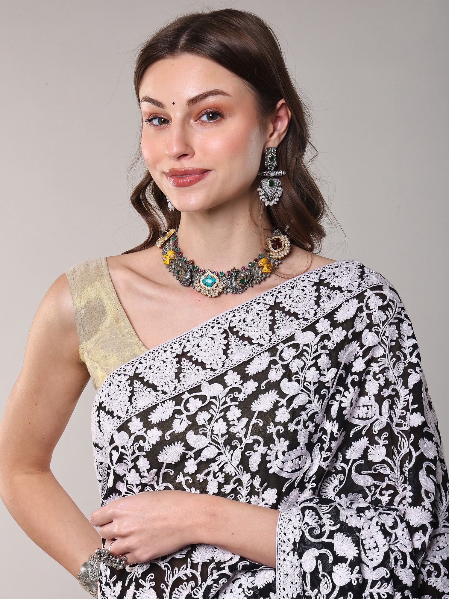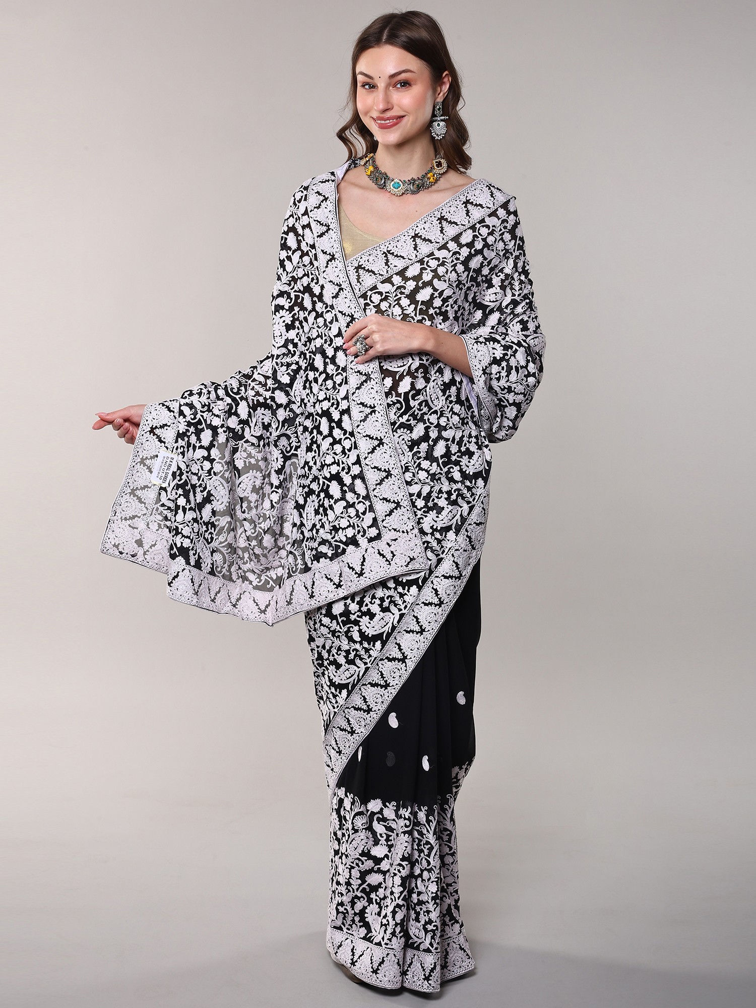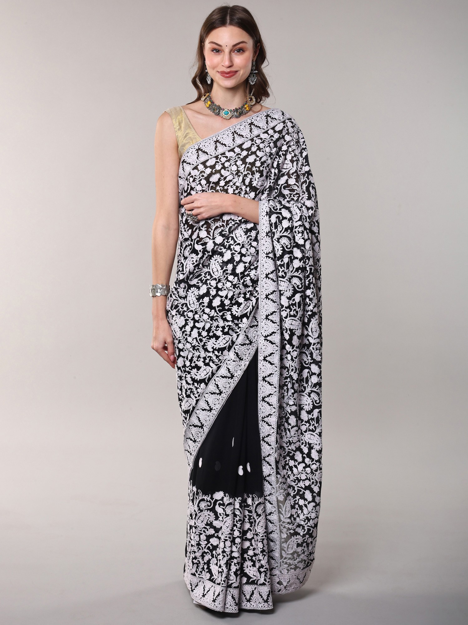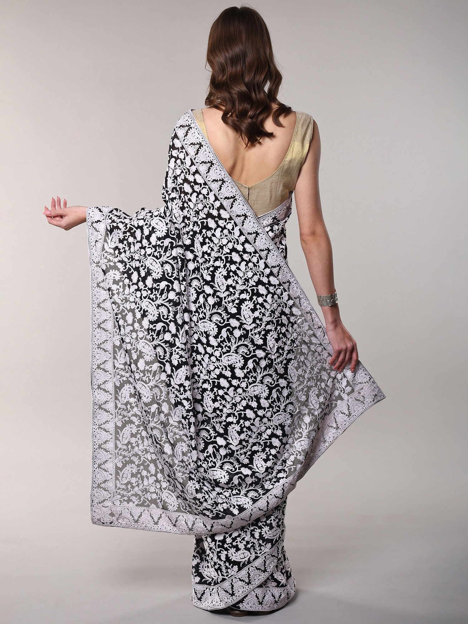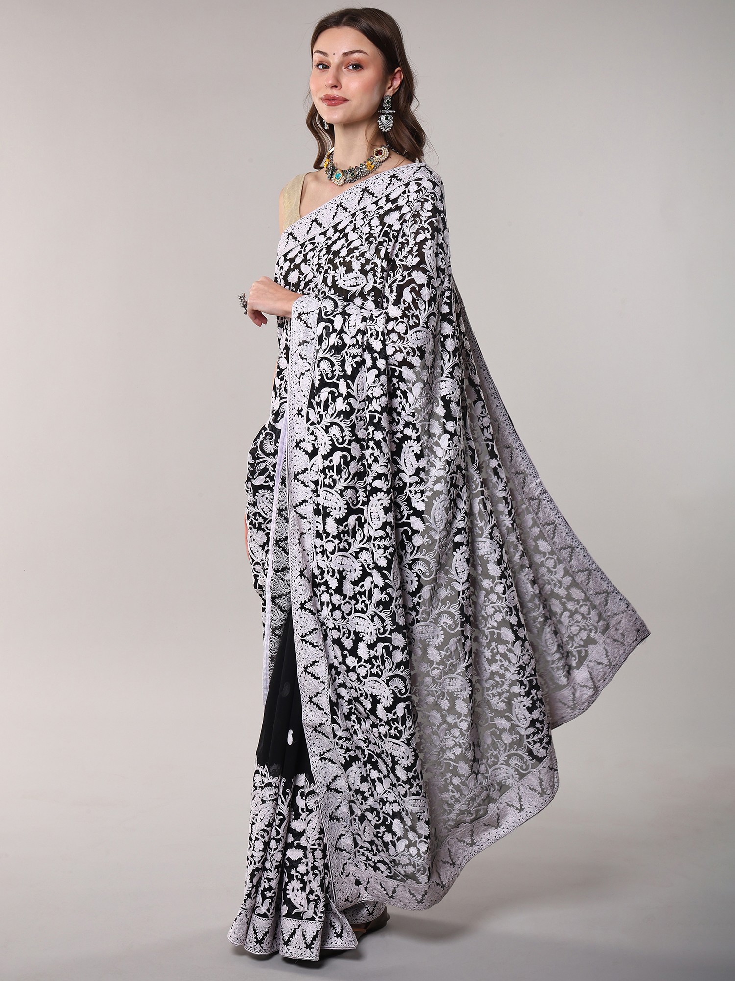 Exquisite Kashmiri Aari Embroidery on Luxurious Georgette