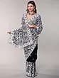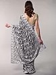 The Aari embroidery technique, a needle-based embroidery style native to Kashmir, is renowned for its ability to create dense and detailed patterns. This saree exemplifies this art form, with the white thread creating a striking contrast against the vibrant turquoise background. The carefully rendered flowers and paisley motifs are not just embroidered; they are brought to life with a texture and depth that speaks volumes about the artisan's skill. The borders are particularly striking, featuring a more pronounced and elaborate rendition of the floral and paisley jaal, framing the saree with undeniable elegance. This is a garment that not only looks beautiful but also celebrates the tactile beauty of handwork.