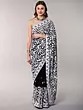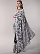 Snow-White Georgette Saree from Kashmir with Aari Embroidered Floral Border and Aanchal