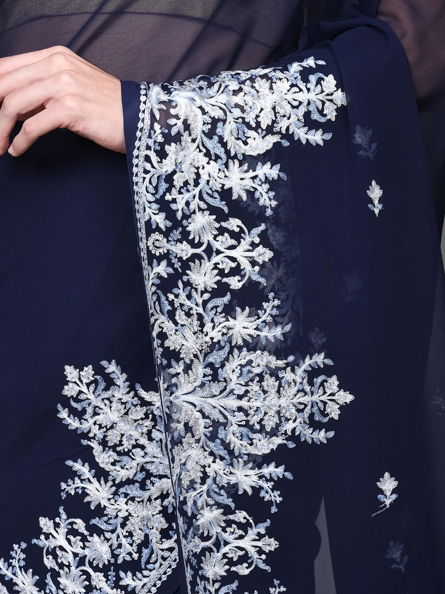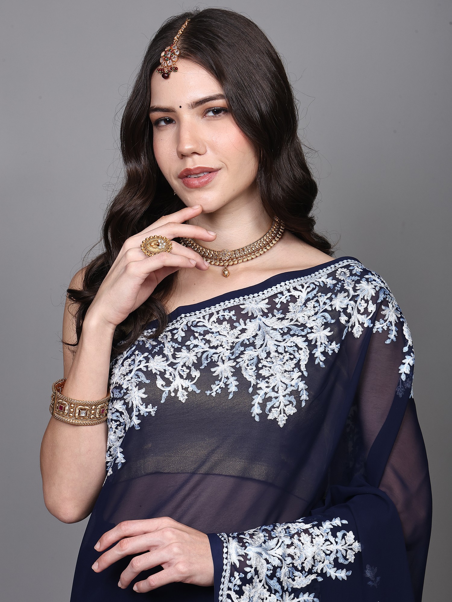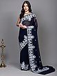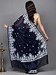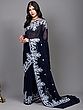 Jet-Black Georgette Saree with Aari Embroidered Floral Vines from Kashmir