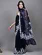Bristol-Black Ari-Embroidered Georgette Saree from Gujarat