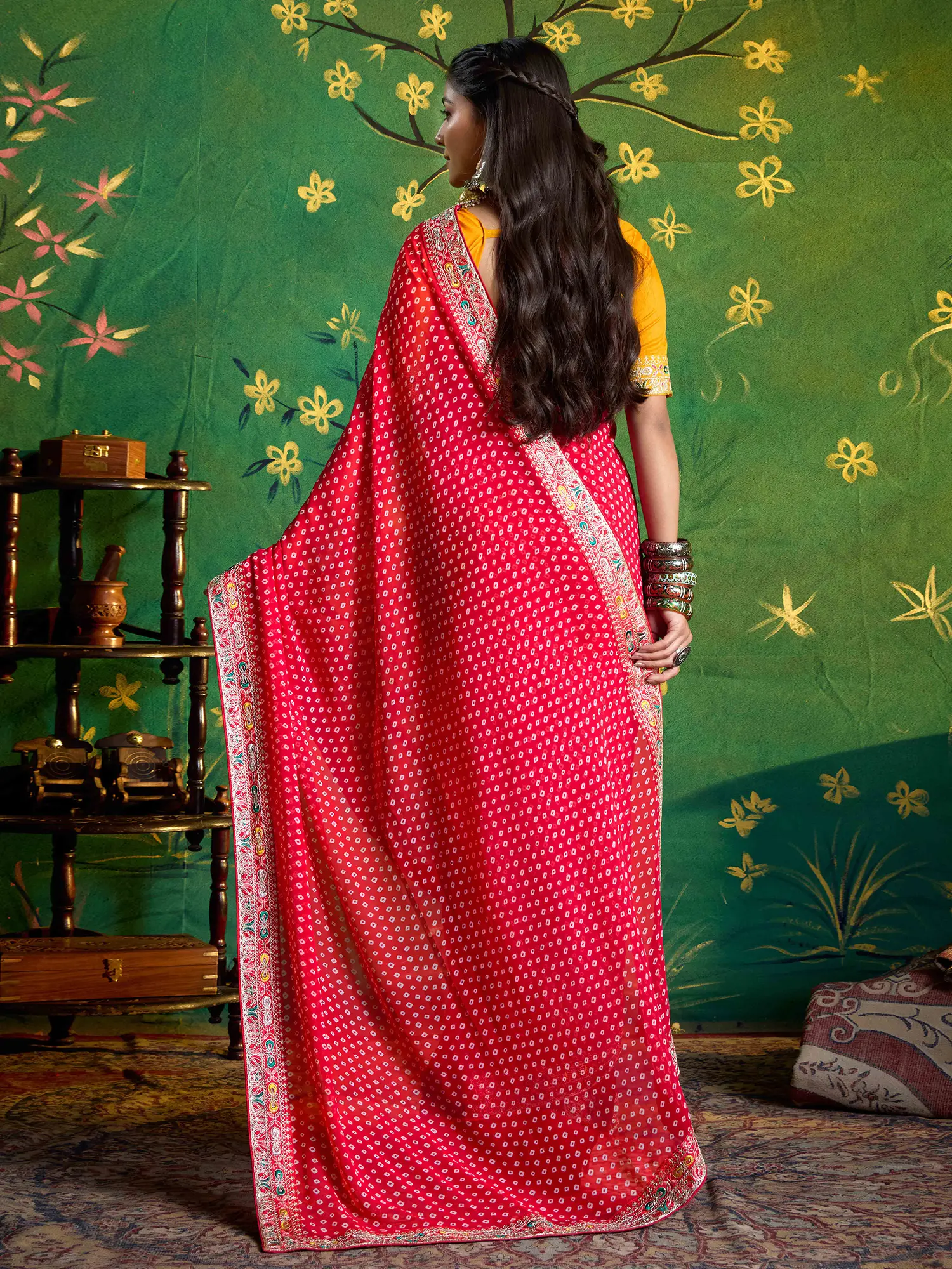 To preserve the vibrant colours and intricate details, we recommend gentle handwashing in cool water with a mild detergent. Avoid harsh scrubbing or wringing; instead, allow it to air dry away from direct sunlight. With proper care, this exquisite piece will remain a cherished and radiant part of your wardrobe for years to come, a testament to its lasting quality and artisanal value.