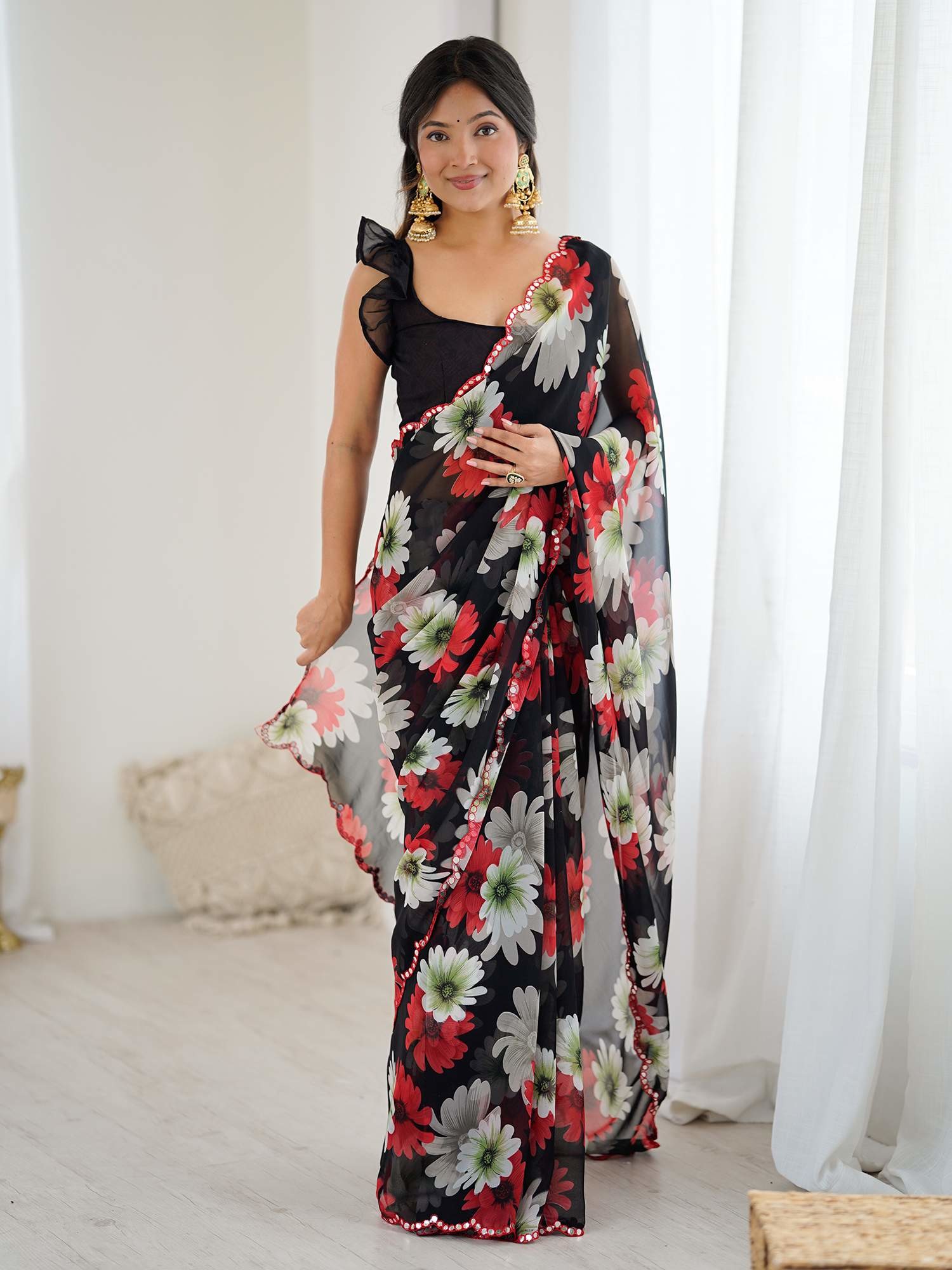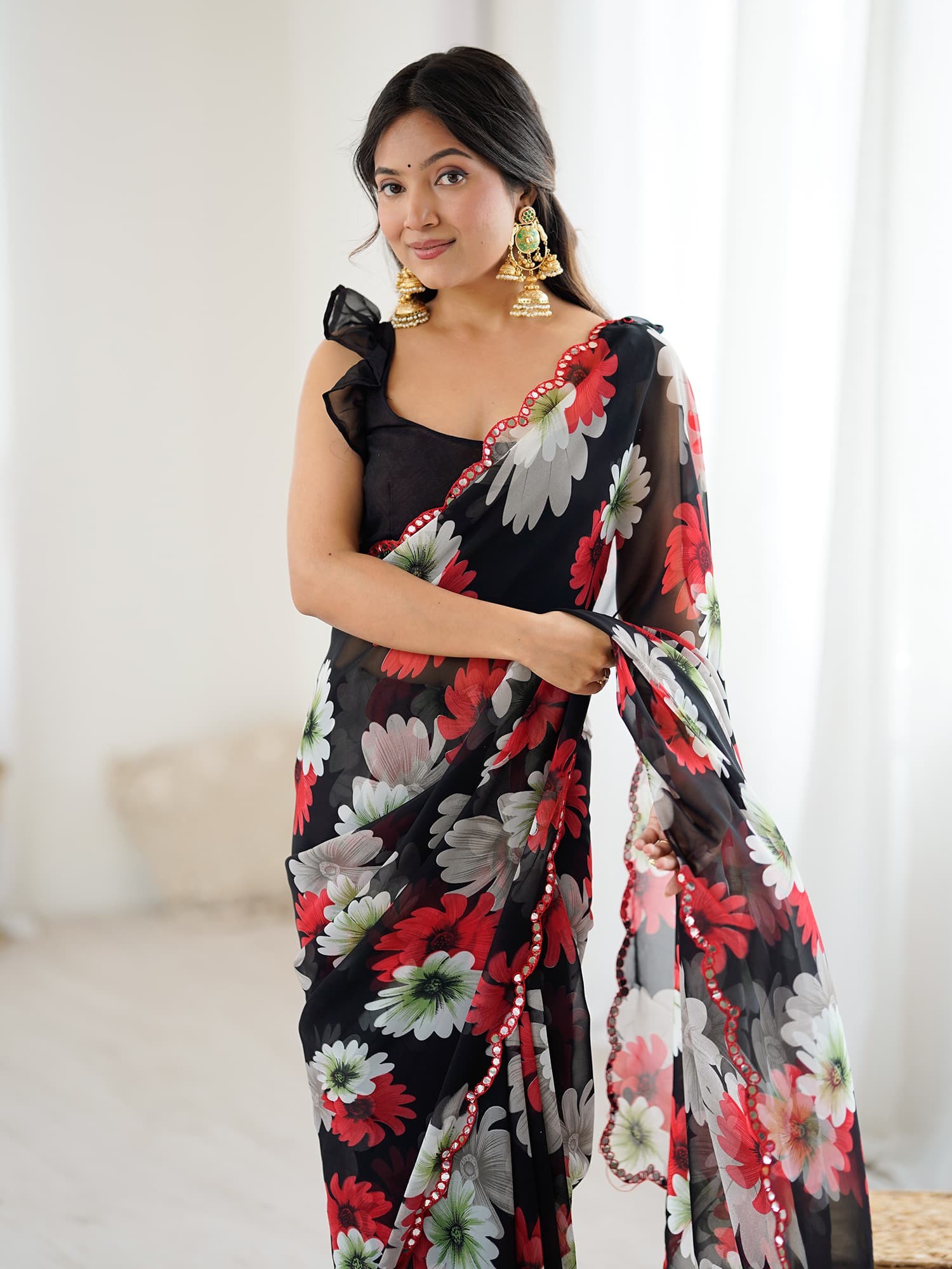 Georgette Saree with Designer Floral Print Lightweight Flowing Fabric Perfect for Daily Wear and Party Wear for women