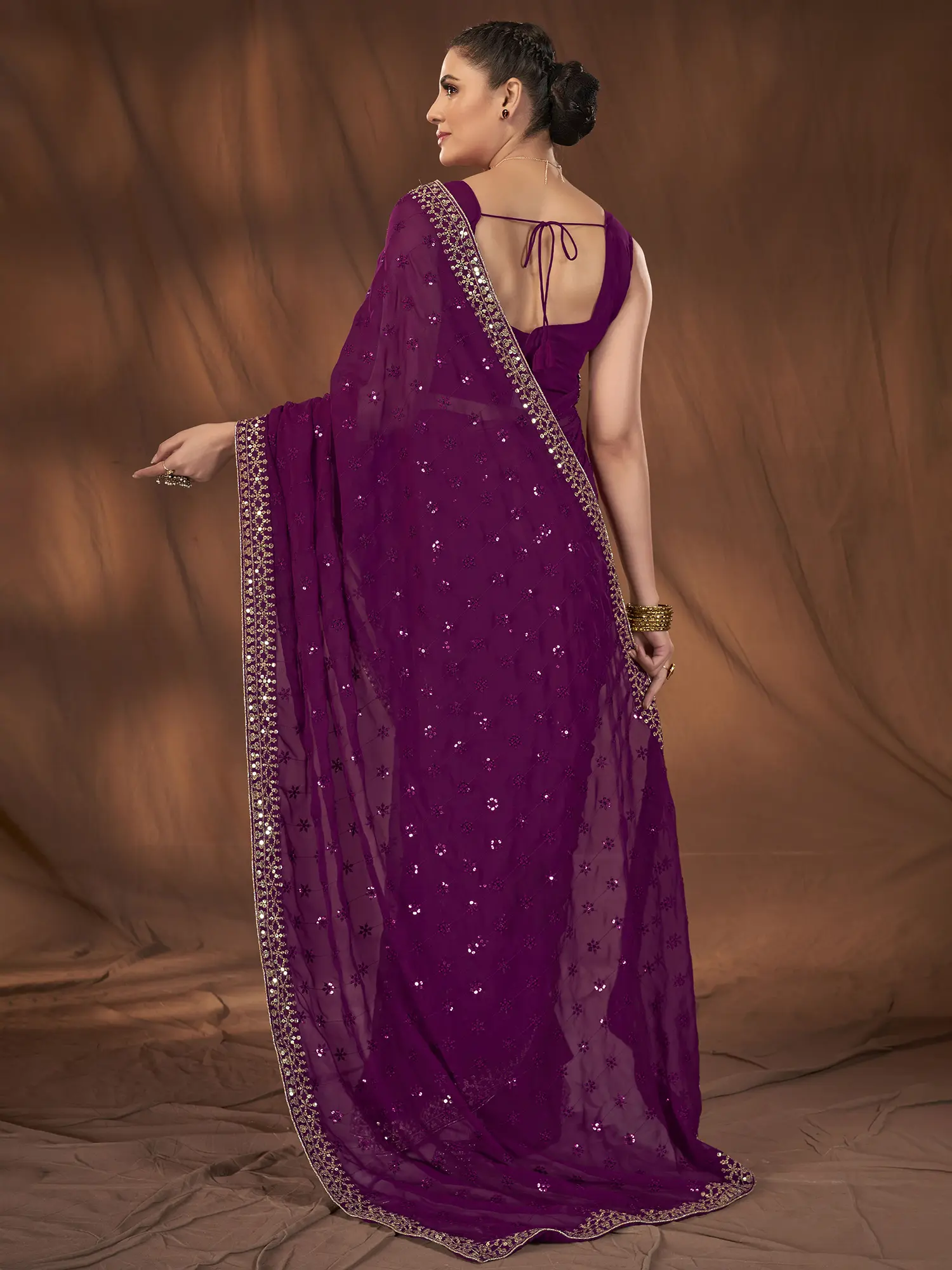 The lightweight and airy nature of georgette makes this saree exceptionally comfortable to wear, allowing you to enjoy your festivities without compromise. The fabric's inherent softness and fluidity ensure a flattering silhouette, making it a perfect choice for those seeking both elegance and ease. The deep purple shade is both universally flattering and undeniably sophisticated, making it suitable for a variety of skin tones and personal styles. This is more than just a garment; it's an investment in enduring style and unforgettable moments.