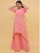 The queenly feel of Sharara has been transformed into chic and youthful clothing with this georgette sharara set. Crafted with gorgeous georgette fabric that can be tailored tastefully to fit the wearer, the kurta is cut with a soft flare on the sides and beautiful floral patterns with hints of golden. The sharara flows gracefully, adding to the contemporary design of the kurta. With the gentle Montone charm that is fashionably modern, the Sharara set makes for unforgettable and effortless partywear.
