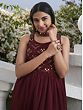 A unique blend of classic and contemporary elements, this georgette embroidered Nayra cut salwar kameez is a piece of fashionable ethnic wear in your wardrobe. The delicate and stylish georgette fabric looks divine with the shimmering mirrorwork and sequin details, along with the classic pinstripe patterns on the length. The designer dupatta and matching palazzo elevate the look further, giving you easy-to-style and unforgettable Indian wear.