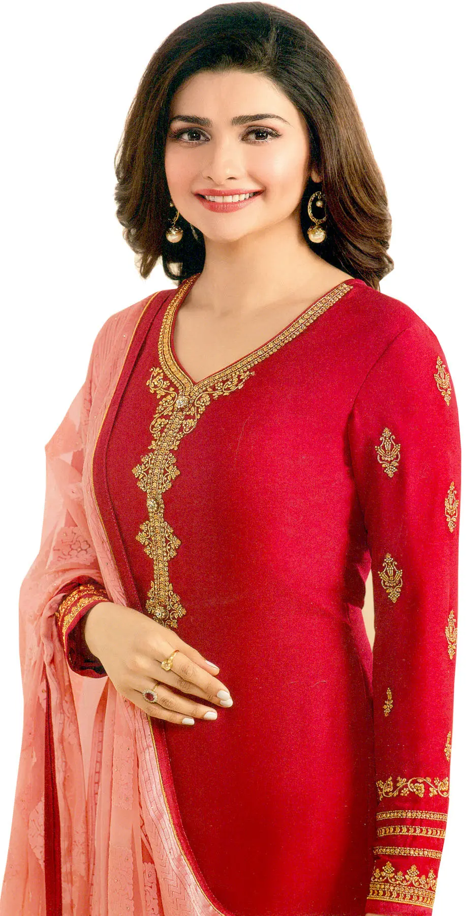 Jester-Red Flared Priyanka Chopra Suit with Thread Embroidered Flowers