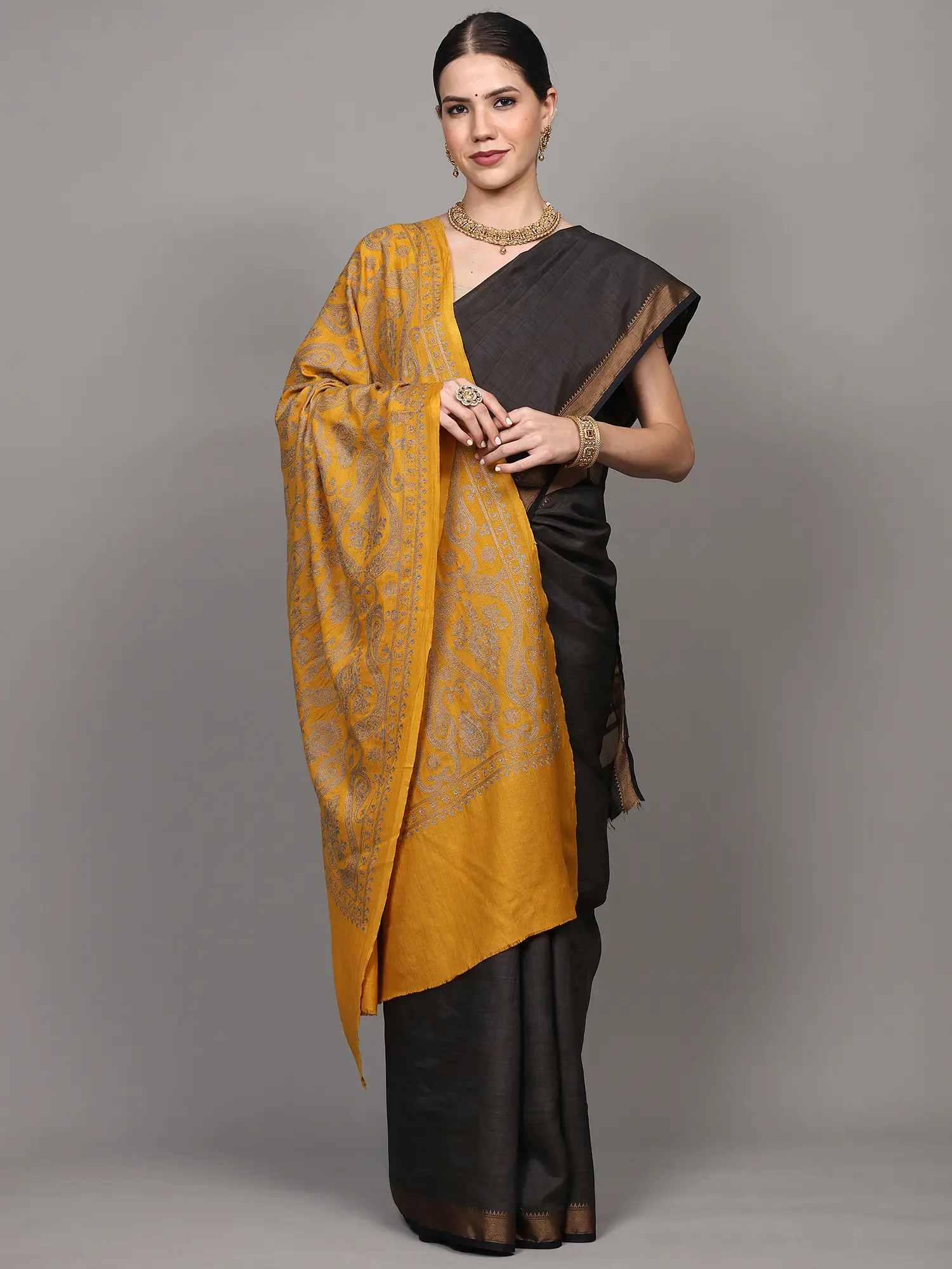 Fine Woolen Shawl with Paisley Aari Embroidery