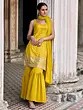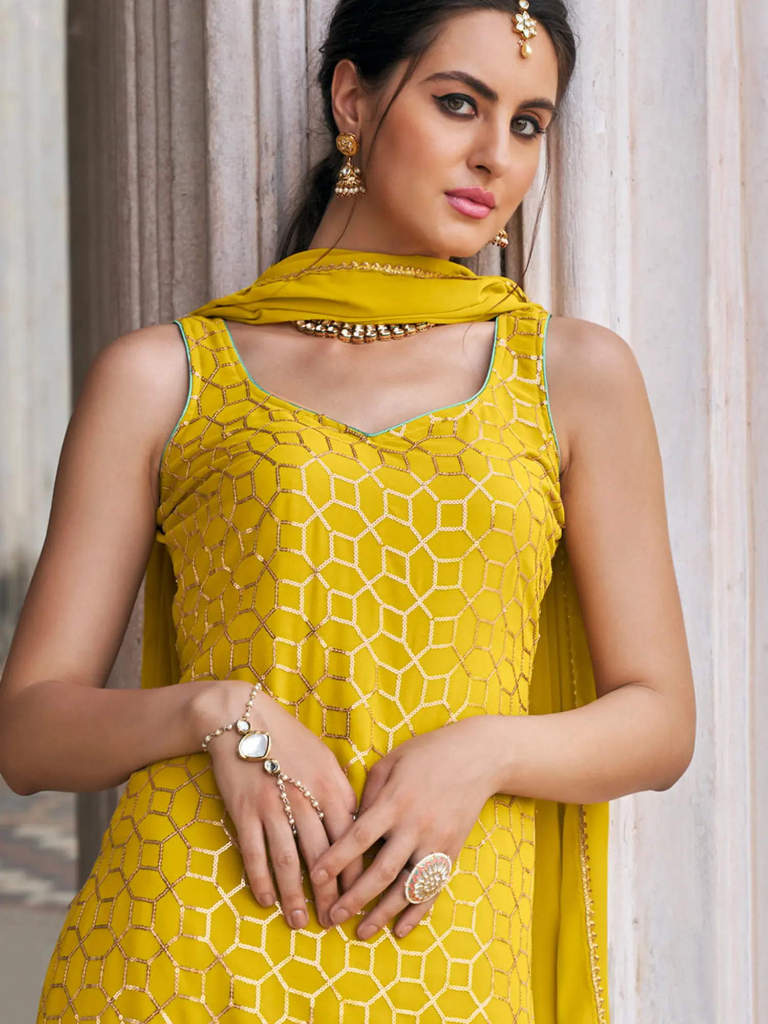 Sequins And Digital Print Work Attractive Georgette Kurti Sharara Set With Attractive Tassels Dupatta