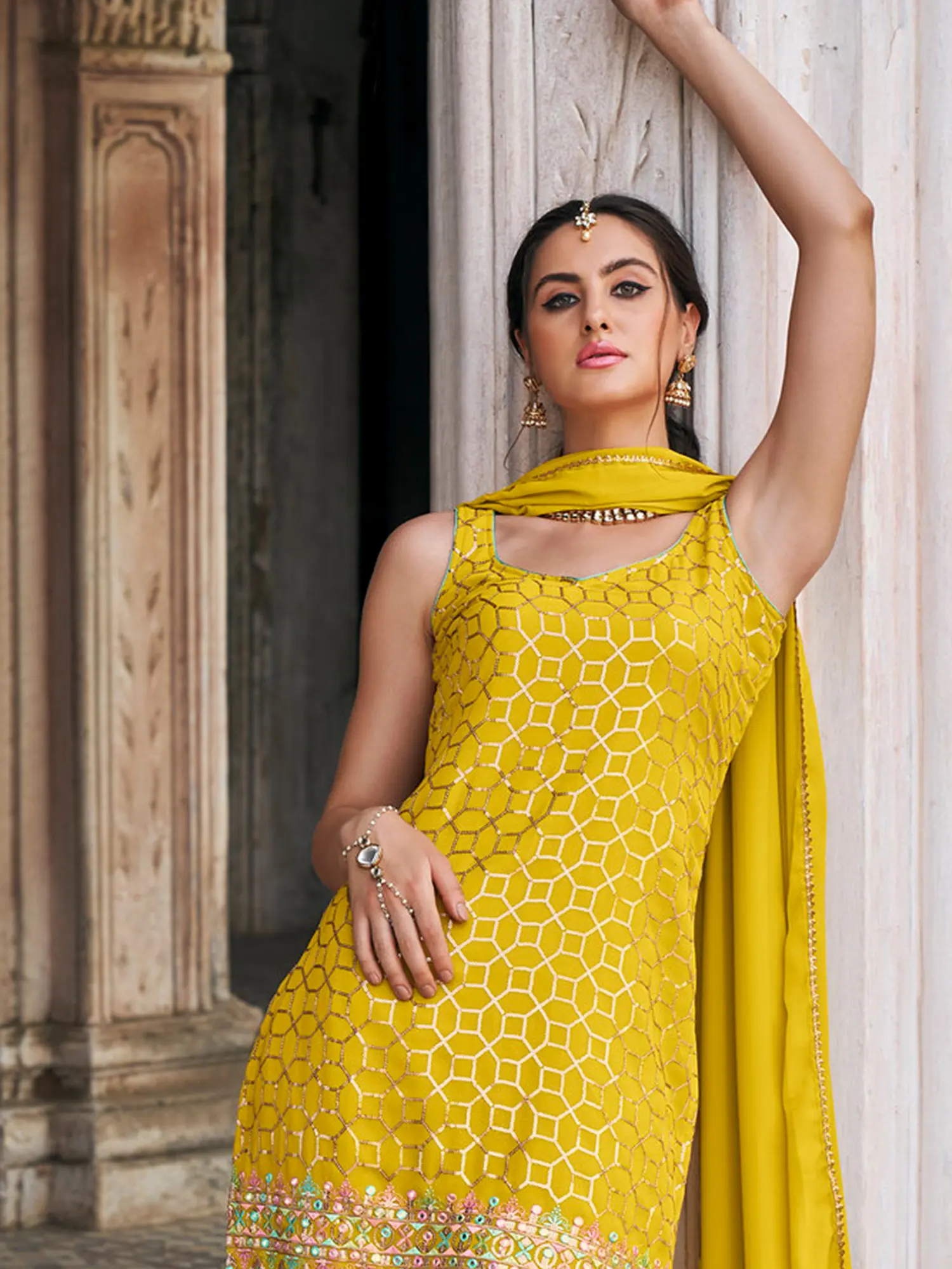 Vichitra Silk Embroidered Sequins And Zari Work Designer Salwar Suit With Matching Dupatta