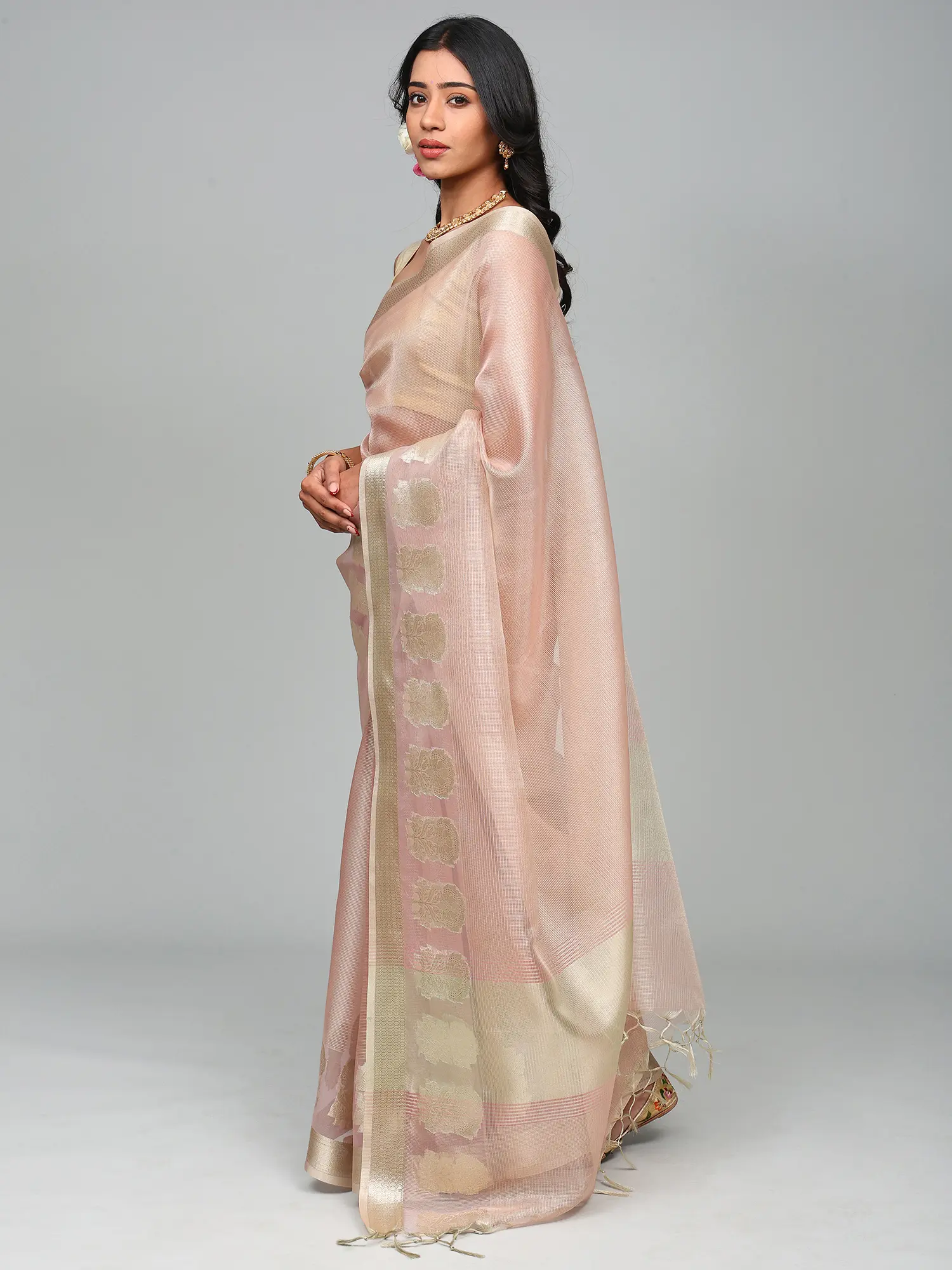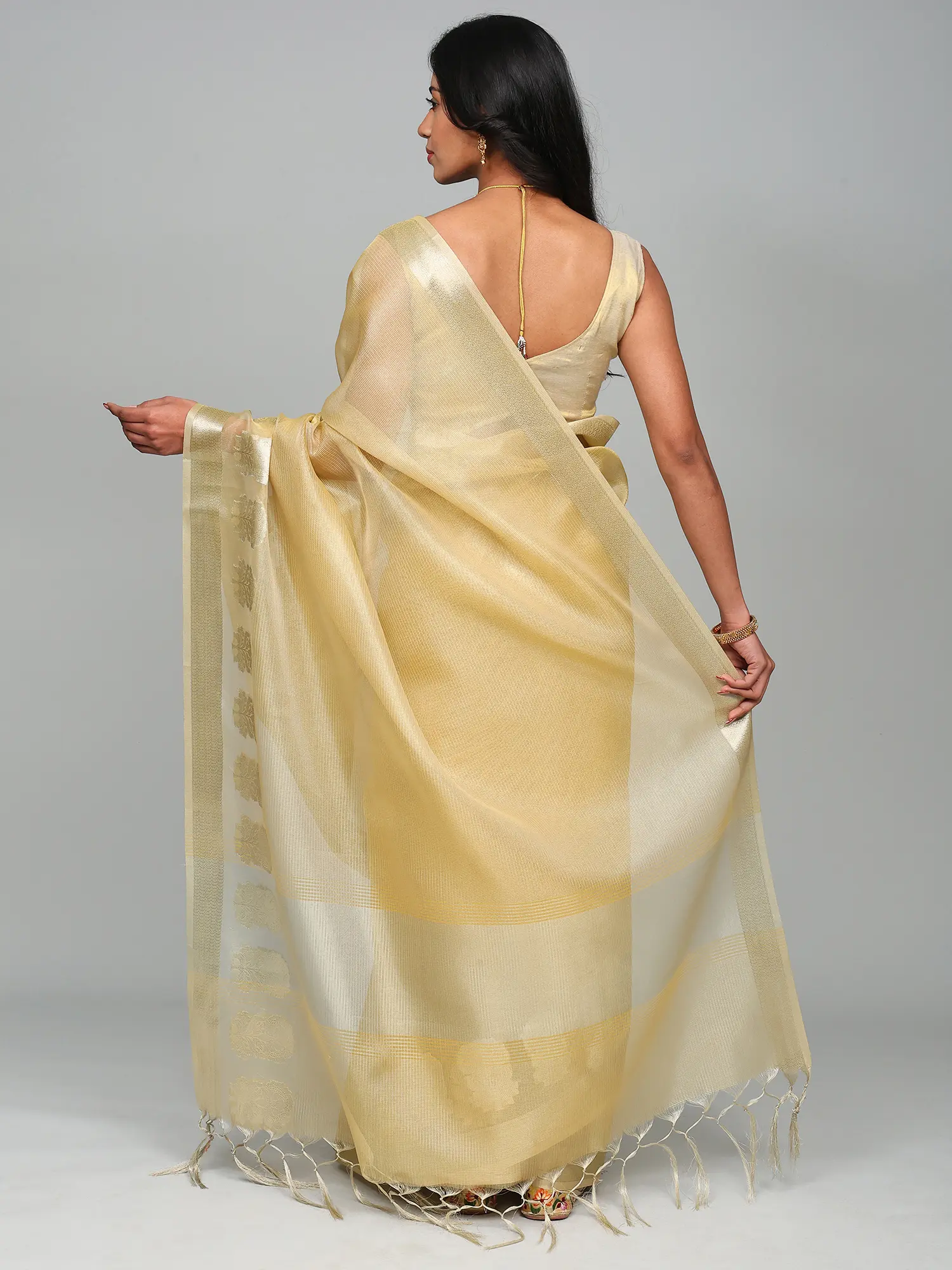 Stripes Woven Art Silk Saree from Banaras with Zari Border