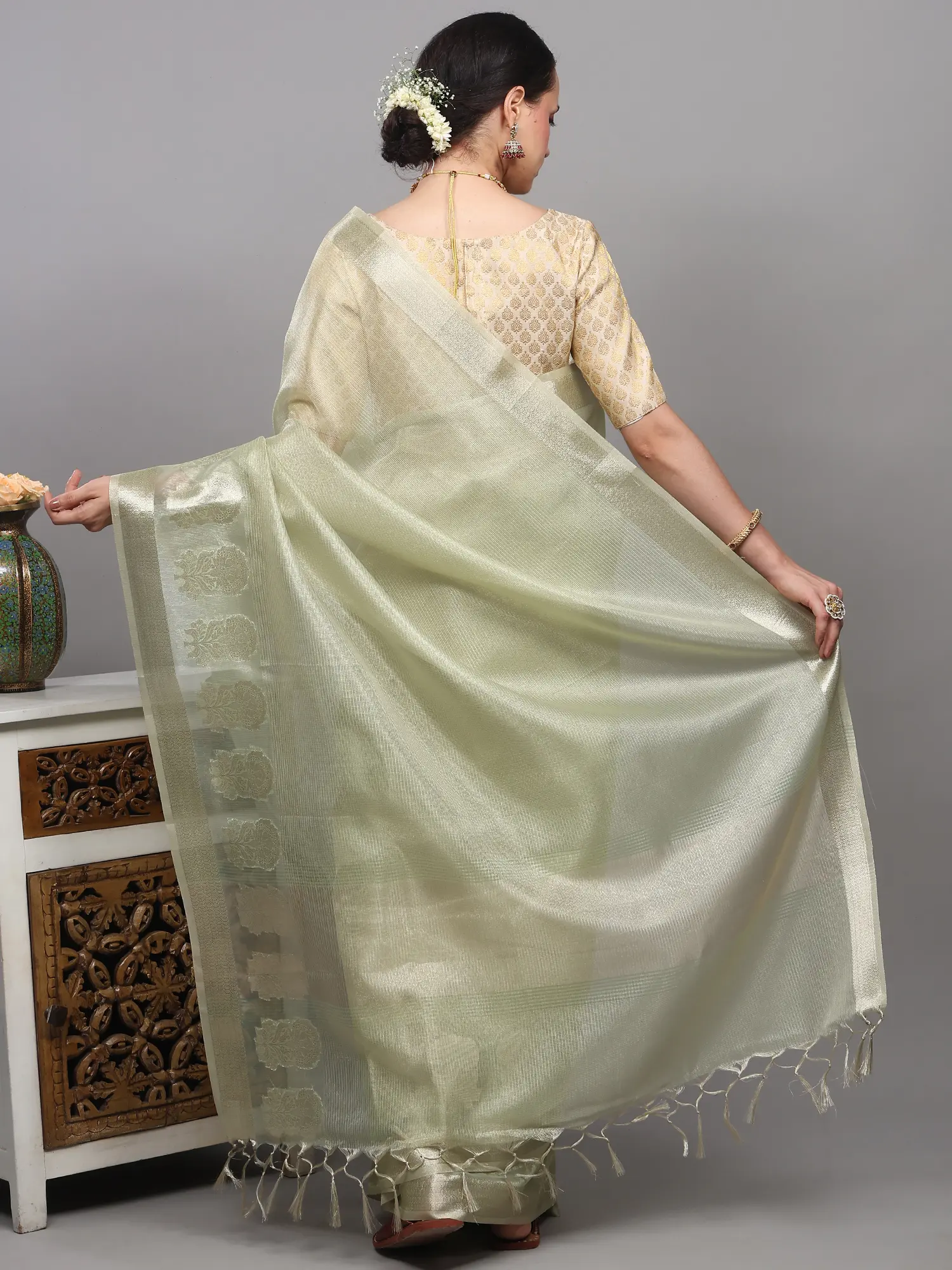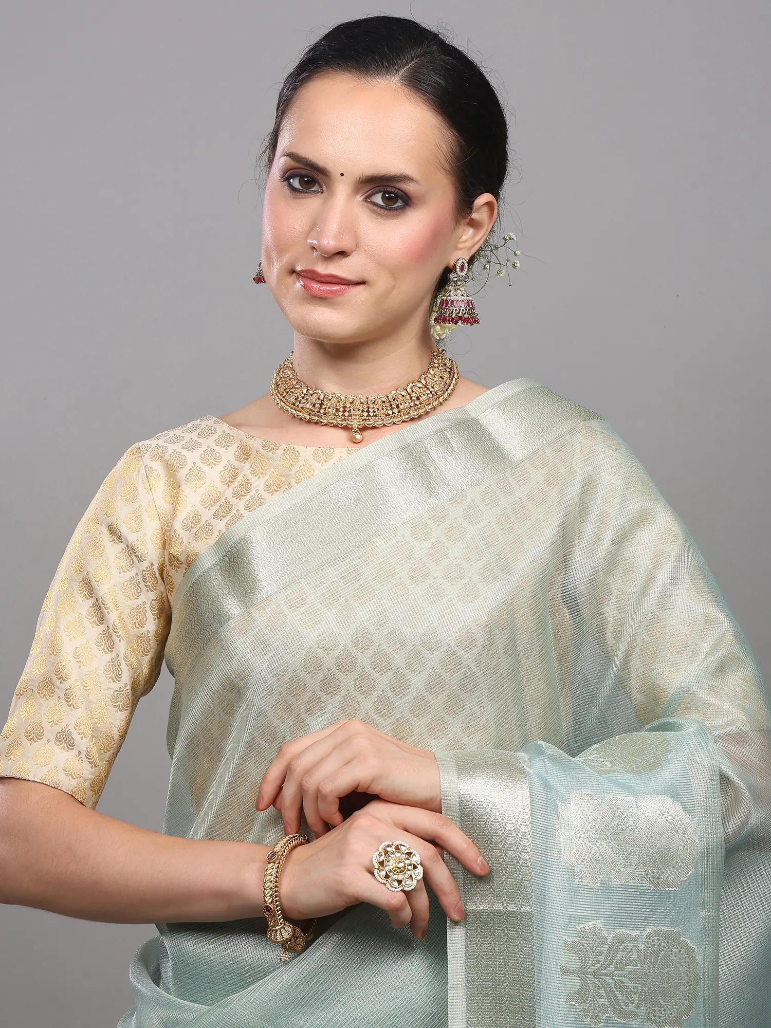 Methyl-Blue Art Silk Saree from Chennai with Brocaded Zari Bootis All-Over