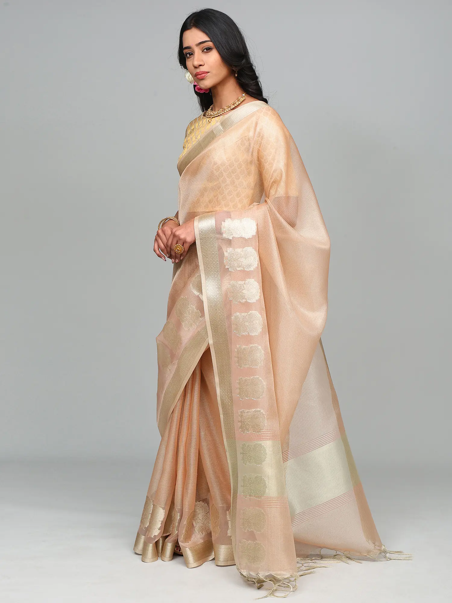 Banarasi Art Silk Saree with All-Over Meena Work and Paisley-Floral Butta