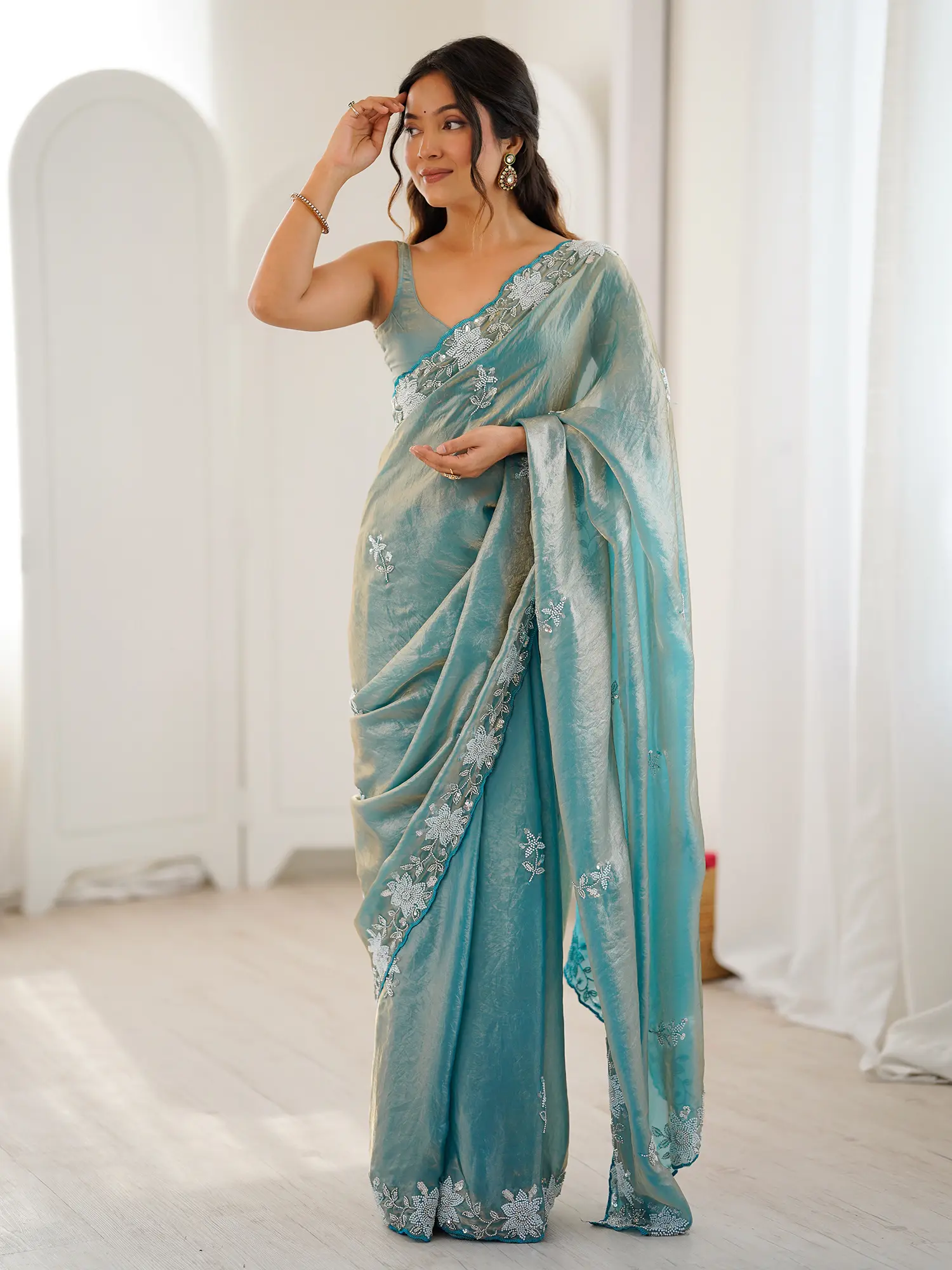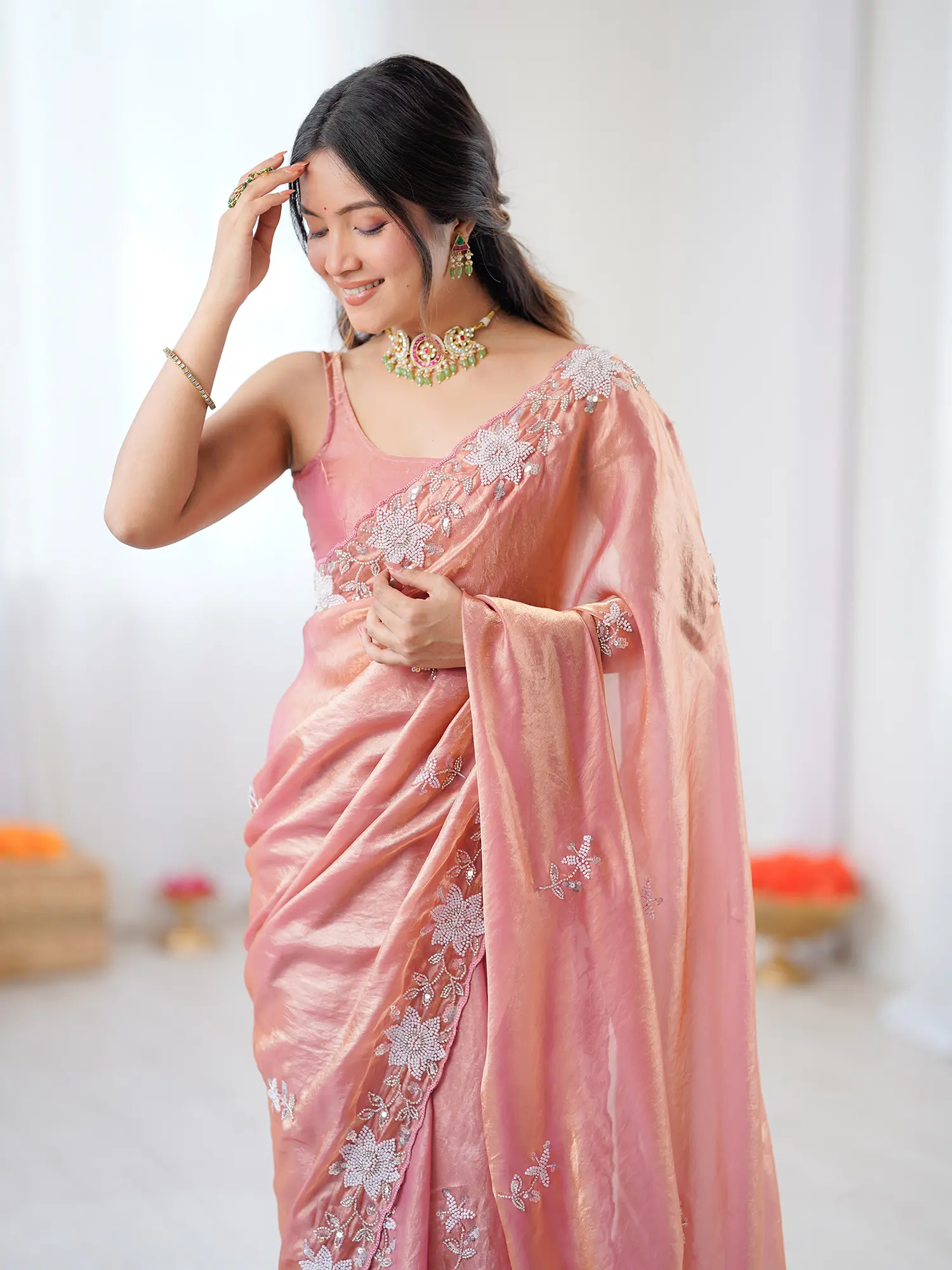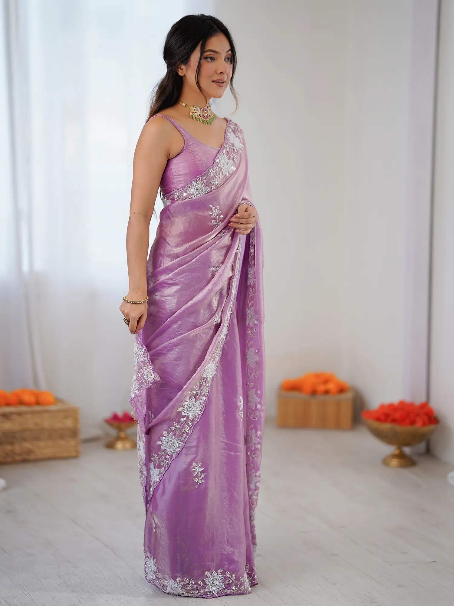 Stunning Shaded Chinon Saree Featuring Premium Double Color Swarovski Embroidery And Elegant Subtle Piping Detailing