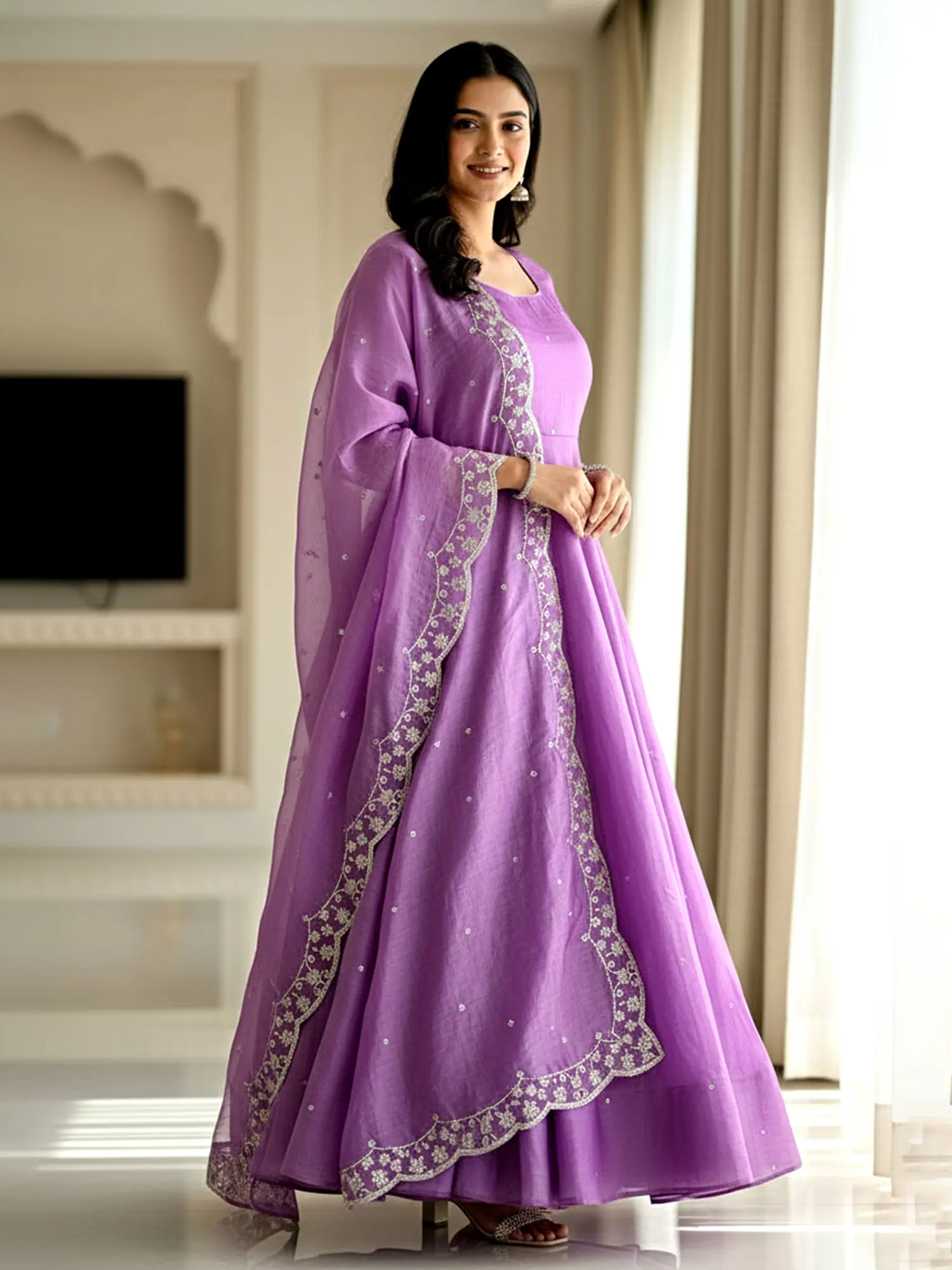 This design draws inspiration from the timeless elegance of Indian festive wear, reinterpreted for the modern woman. It embodies a spirit of joy and celebration, reflecting a rich cultural heritage that values beauty and intricate craftsmanship. Wearing this is more than just an aesthetic choice; it's an embrace of tradition and a connection to enduring celebrations.