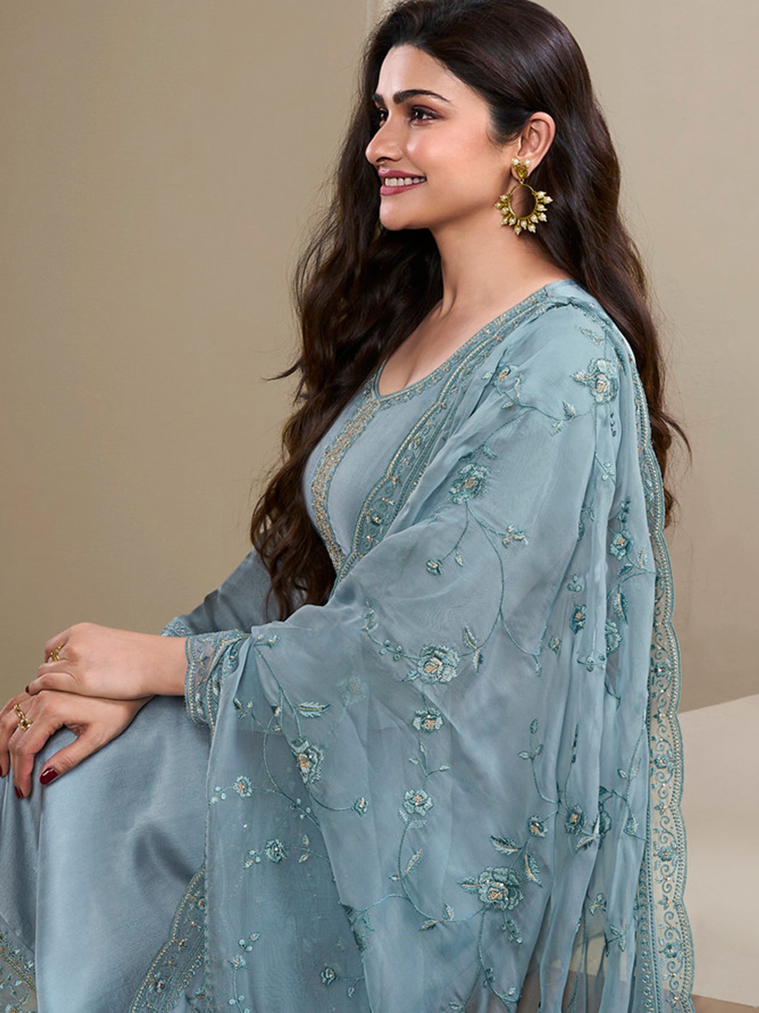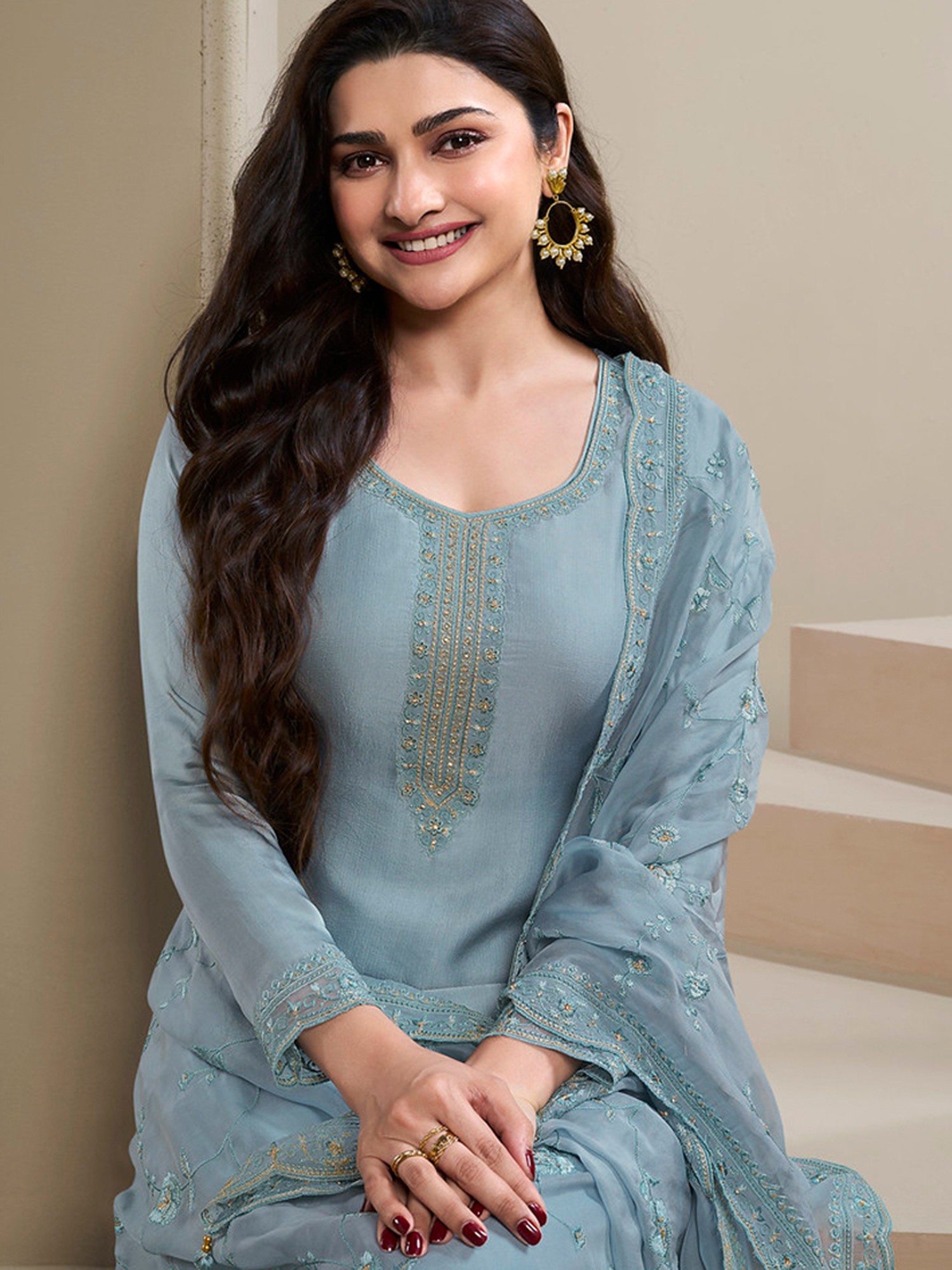 Chinon Salwar Suit Set Heavy Thread Embroidery With Organza Dupatta Party Wear Wedding Festive Wear Ethnic Outfit