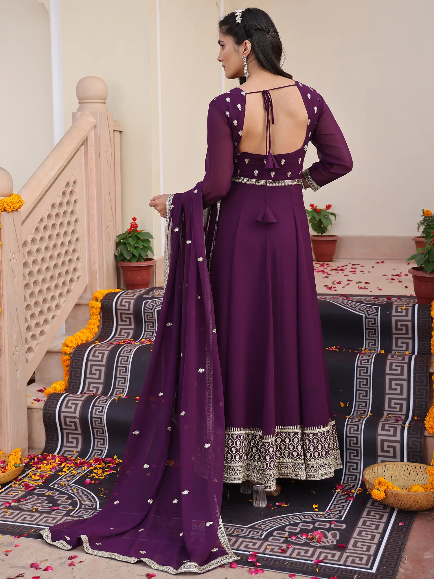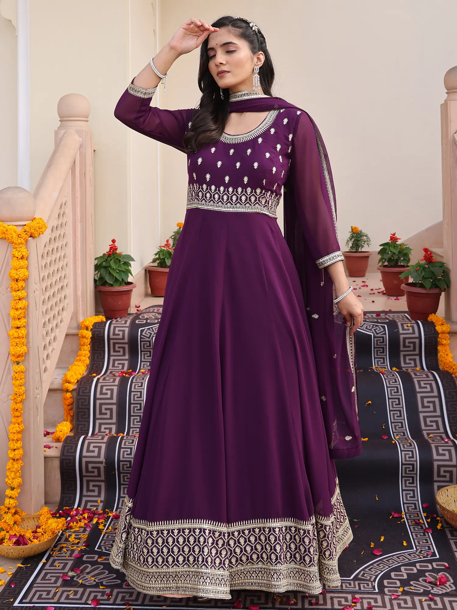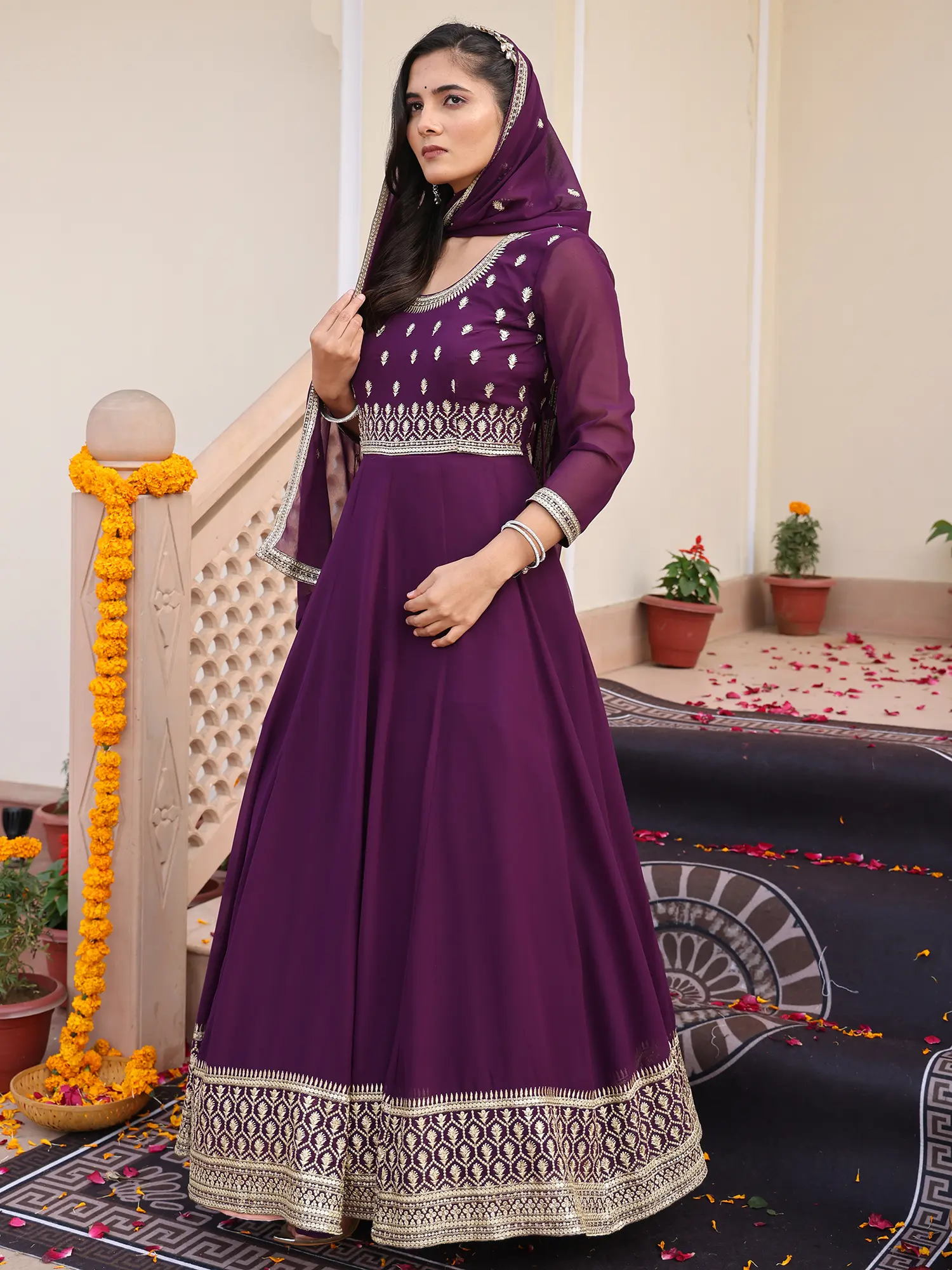 This silhouette draws inspiration from the regal elegance of traditional Indian attire, reinterpreted for the contemporary connoisseur. The Anarkali style, historically associated with royalty and significant celebrations, carries a rich cultural significance. You'll feel connected to a lineage of grace and festivity when you don this beautifully crafted garment.