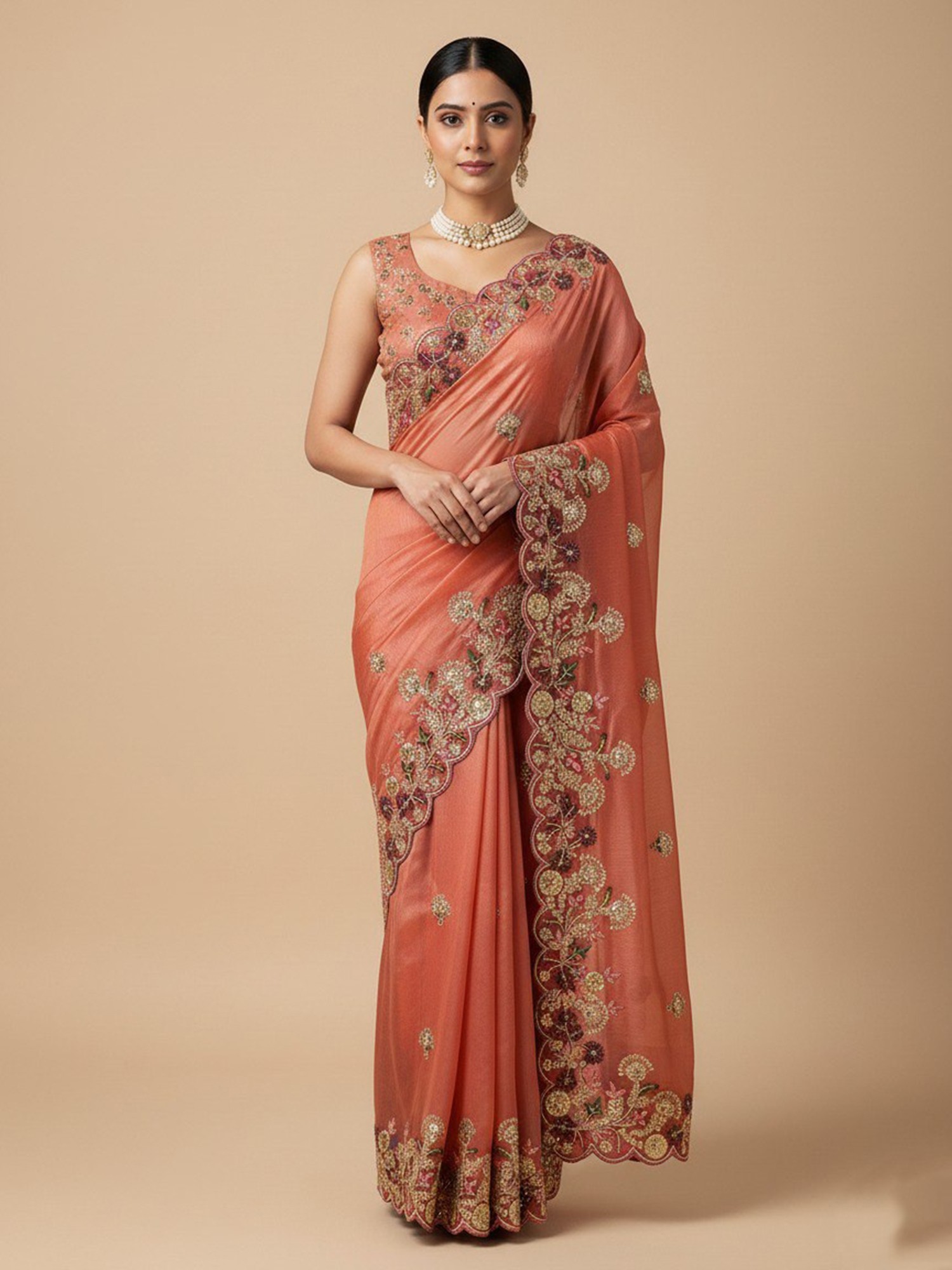 Experience the ethereal drape and sophisticated embellishments that transform a traditional garment into a wearable masterpiece. This creation is designed to make you feel captivating, whether you're attending a celebratory occasion or a refined gathering.