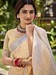 Lucent-White Stripes Weave Saree from Banaras with Red Border
