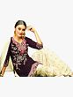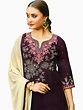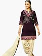 Grape Wine and Beige Patiala Salwar Kameez Suit with Embroidered Flowers and Bootis