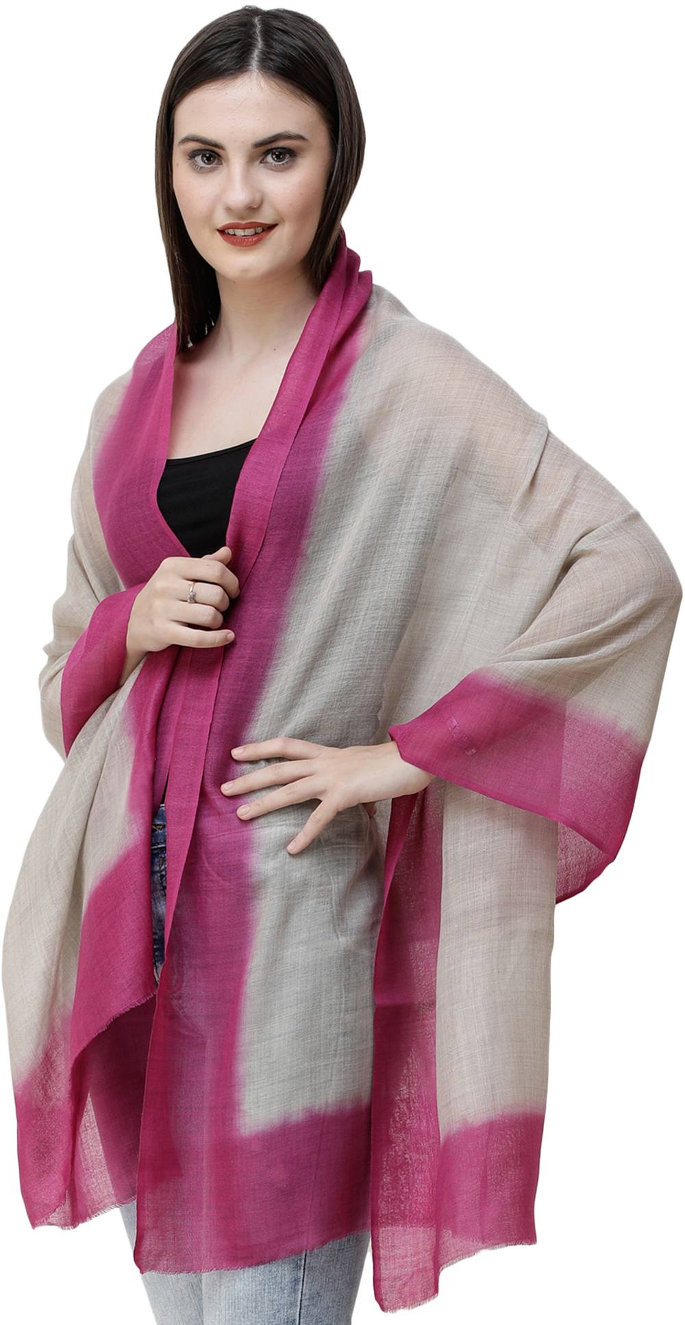 Embrace yourself in an elegant wrap of pure wool and silk with his beautiful stole from Amritsar, which is the perfect partner for your style, for the days when you want to keep it simple, comfortable, yet fashionable. Crafted with a blend of silk and wool, the stole has a luxurious feel, which is amplified by the light touch of lovely colors and a muted field. The solid border adds a hint of loveliness to the piece, just like this stole will add to your wardrobe.