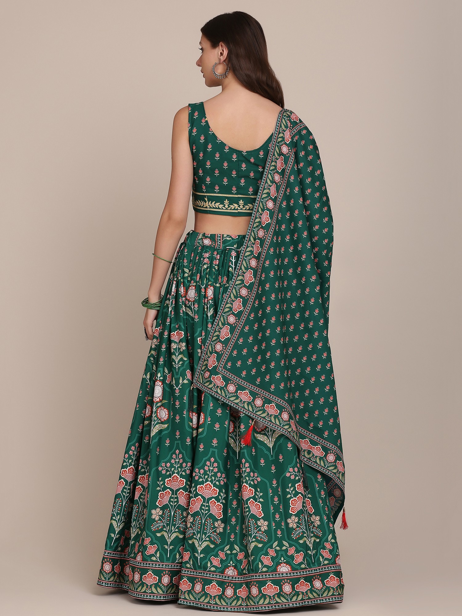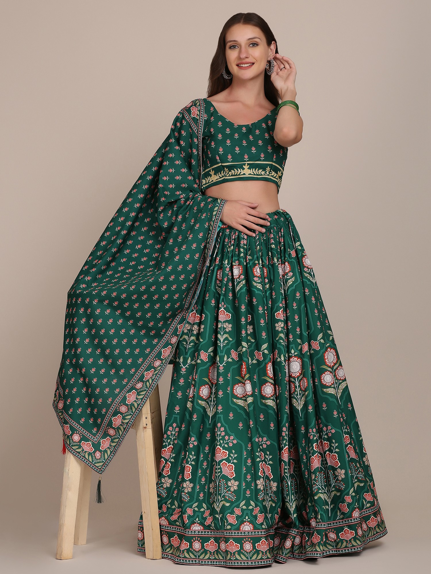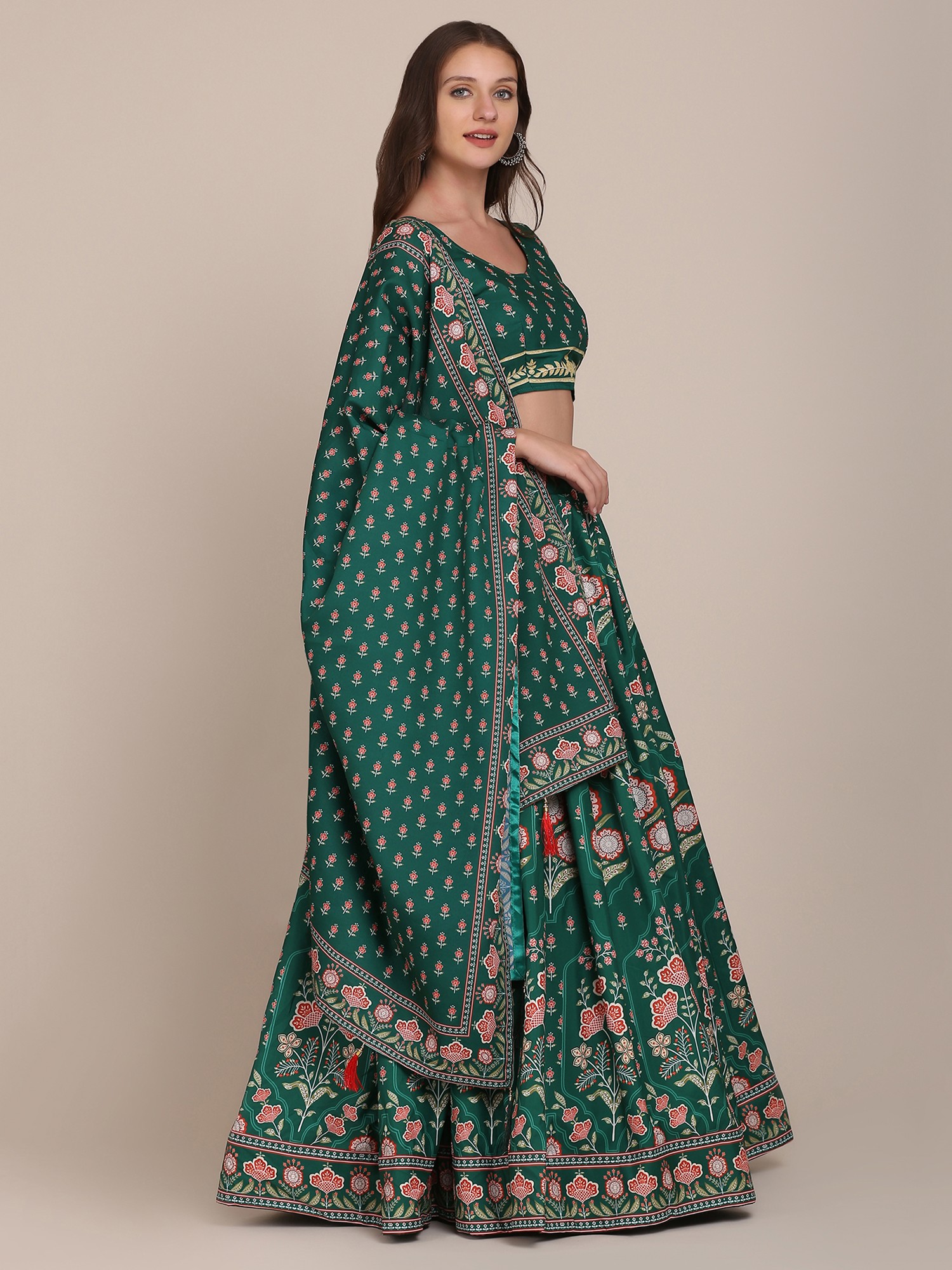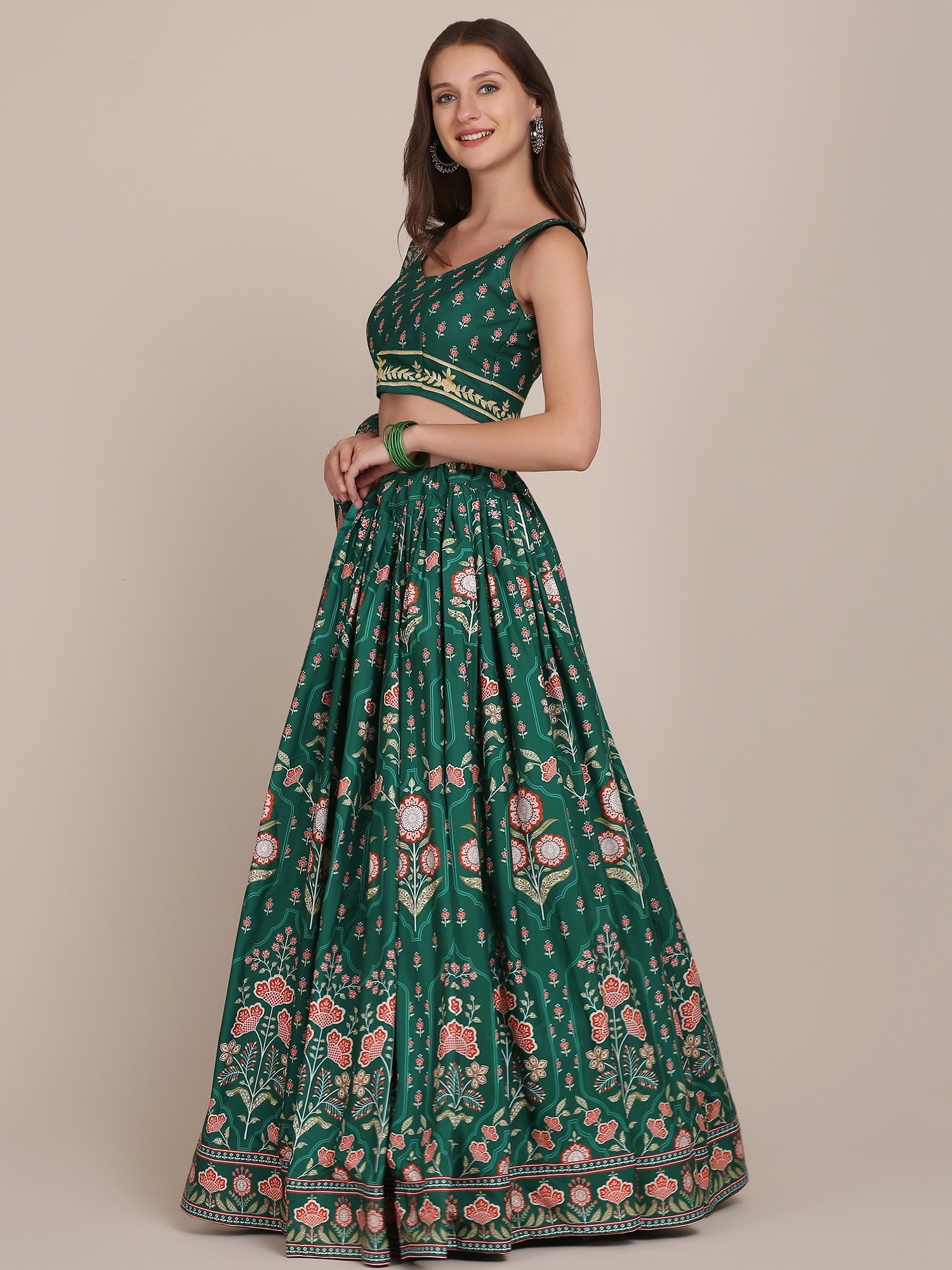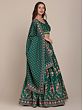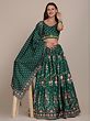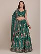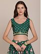 Bottle-Green Net Beads and Golden Thread Embroidery Lehenga Choli with Cutwork Dupatta