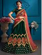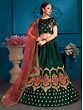 Embark on a royal journey with the Green-Gabels Satin Lehenga Choli, a queenly ensemble that captivates in its luxurious beauty. The delicate satin, bathed in resplendent green, becomes a canvas for Mughal Motif Stone-Dori Work. Lustrous Zari details on the hemline draw inspiration from regal Mughal butas, gracefully embracing floral motifs. The contrasting soft net dupatta, in a gentle peach hue, features a rich border that strikes a lovely balance. This ensemble seamlessly weaves history and elegance, creating a timeless allure.