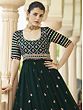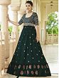 A fashionable marriage of traditional Mughal patterns and a contemporary fit, this green georgette gown is a gift for lovers of ethnic wear. In the style of an Anarkali suit, the gown is tailored with a delicate georgette fabric, which becomes a beautiful canvas for the Mughal floral buttis and embellishments to glow with timeless regalia.