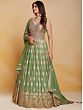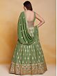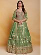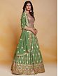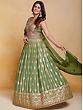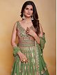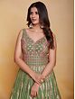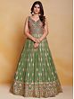 The softness of green transforms this georgette Anarkali style gown into elegant ethnic wear. The delicately flowing georgette is embellished with classic embroidery creating a traditional paisley and floral Ladi pattern, that infuses the dress with a charming feel, paired with a matching dupatta to complete your festive fashionable wardrobe.