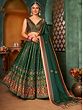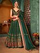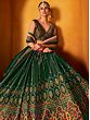 Bottle-Green Net Beads and Golden Thread Embroidery Lehenga Choli with Cutwork Dupatta