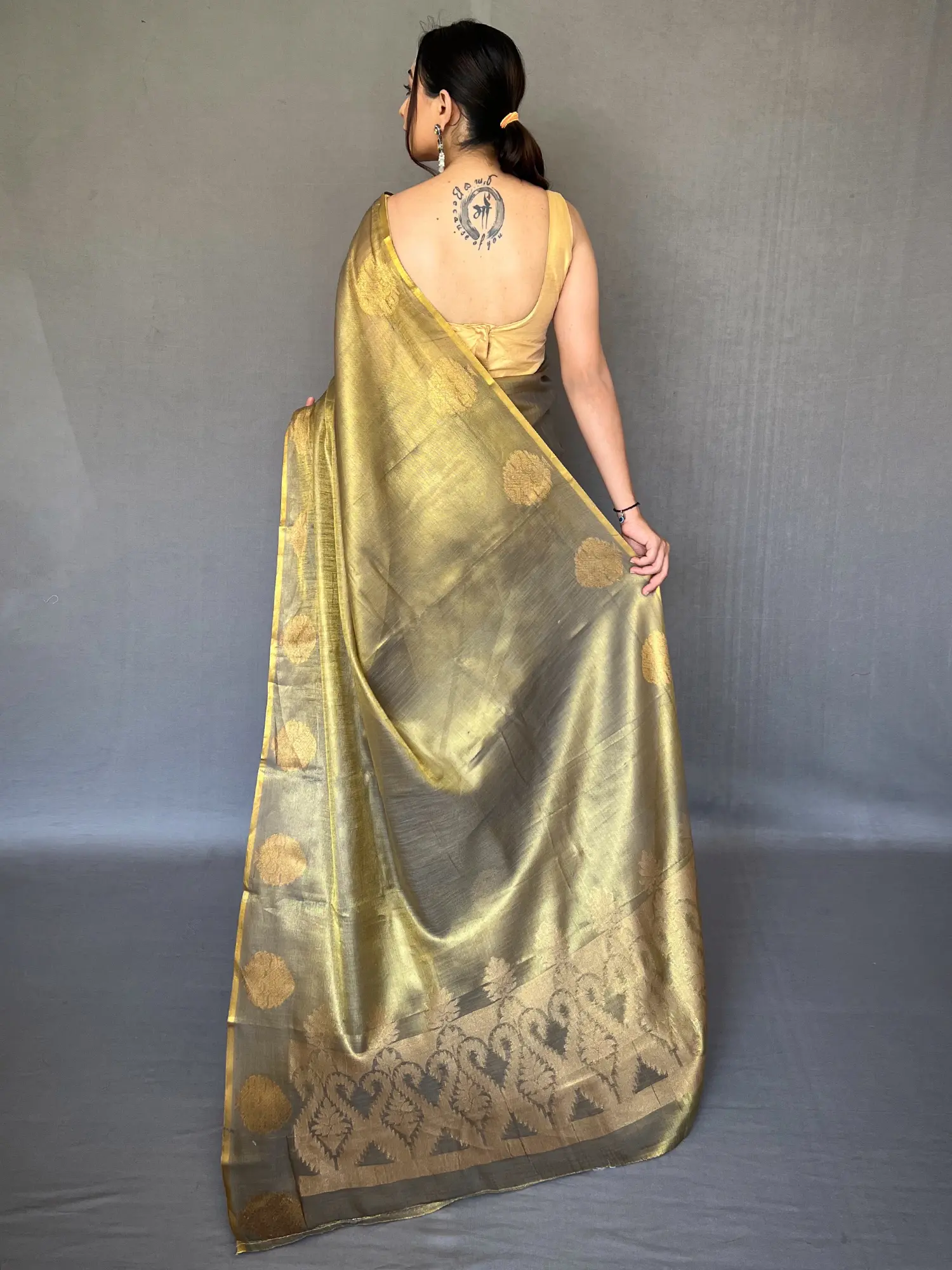 Wood Thrush Bandhani Saree from Rajasthan with Zari Weave on Border