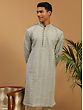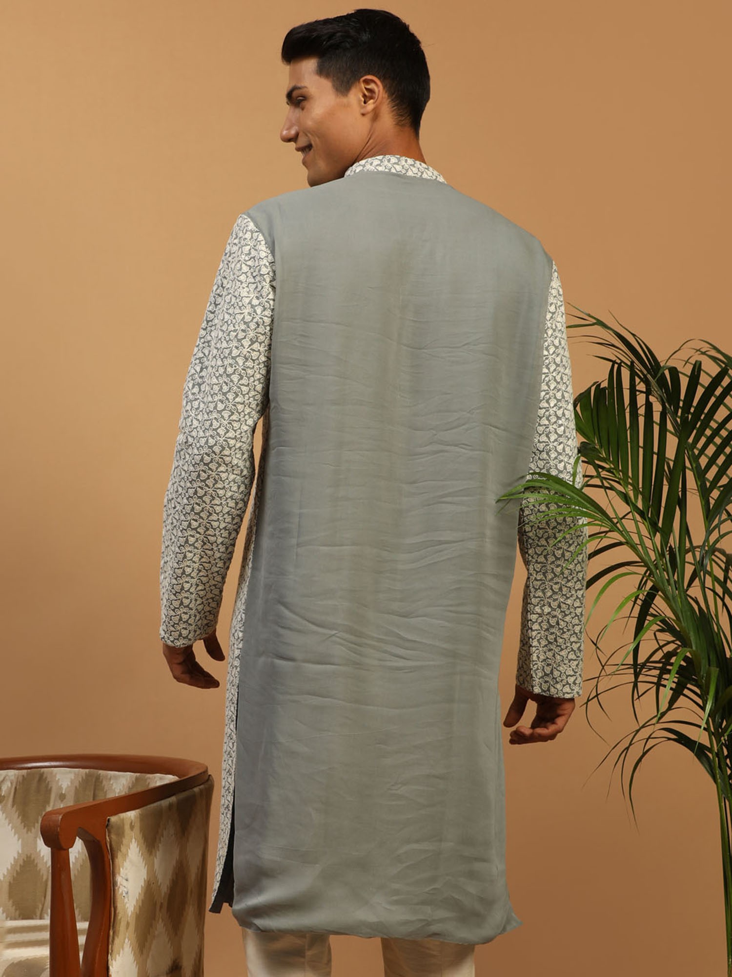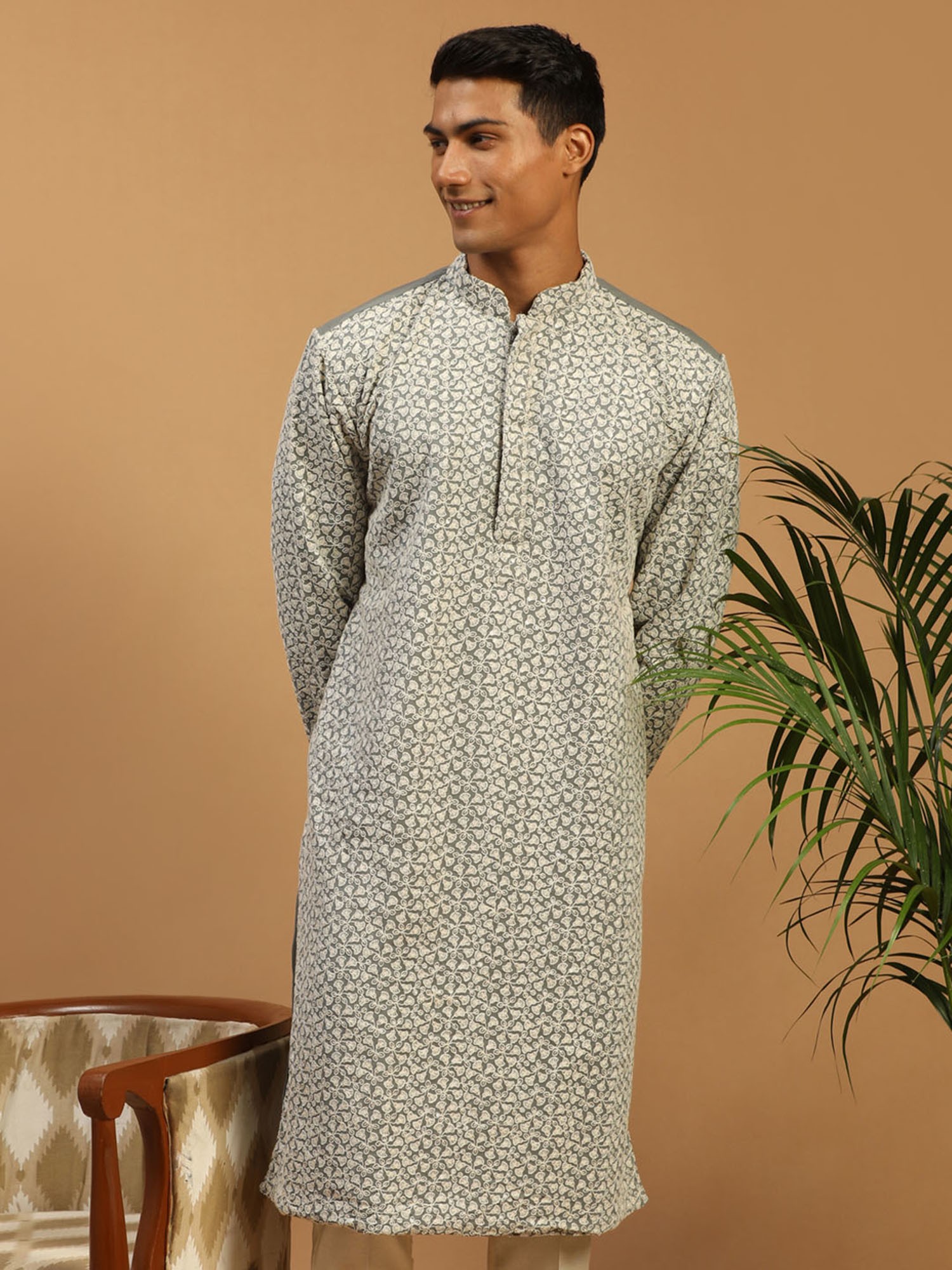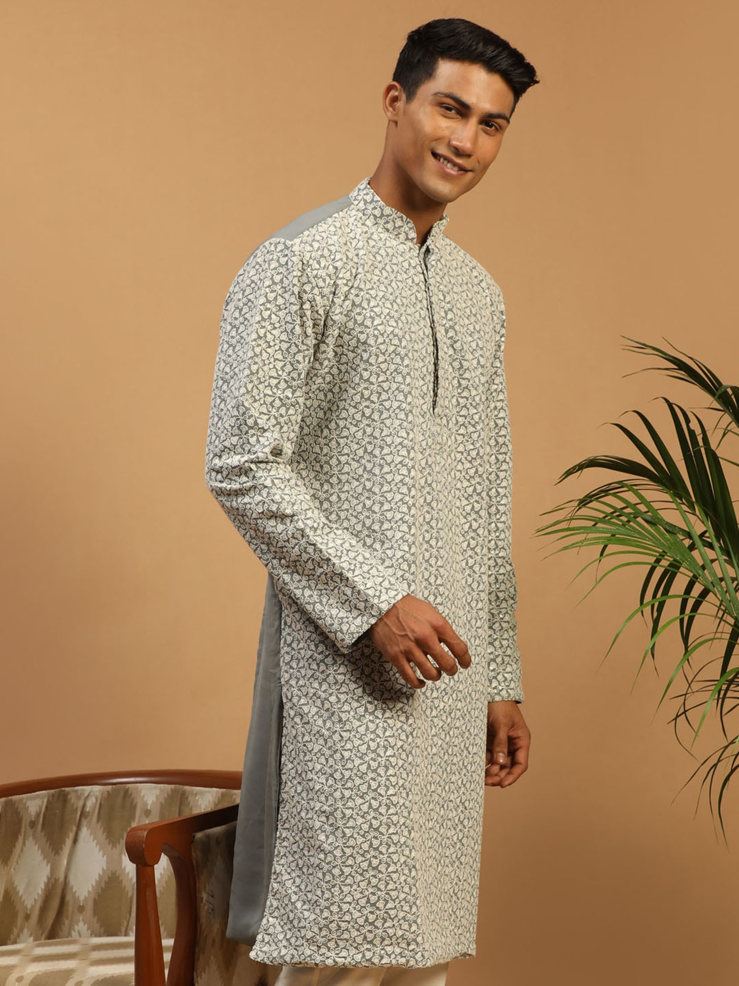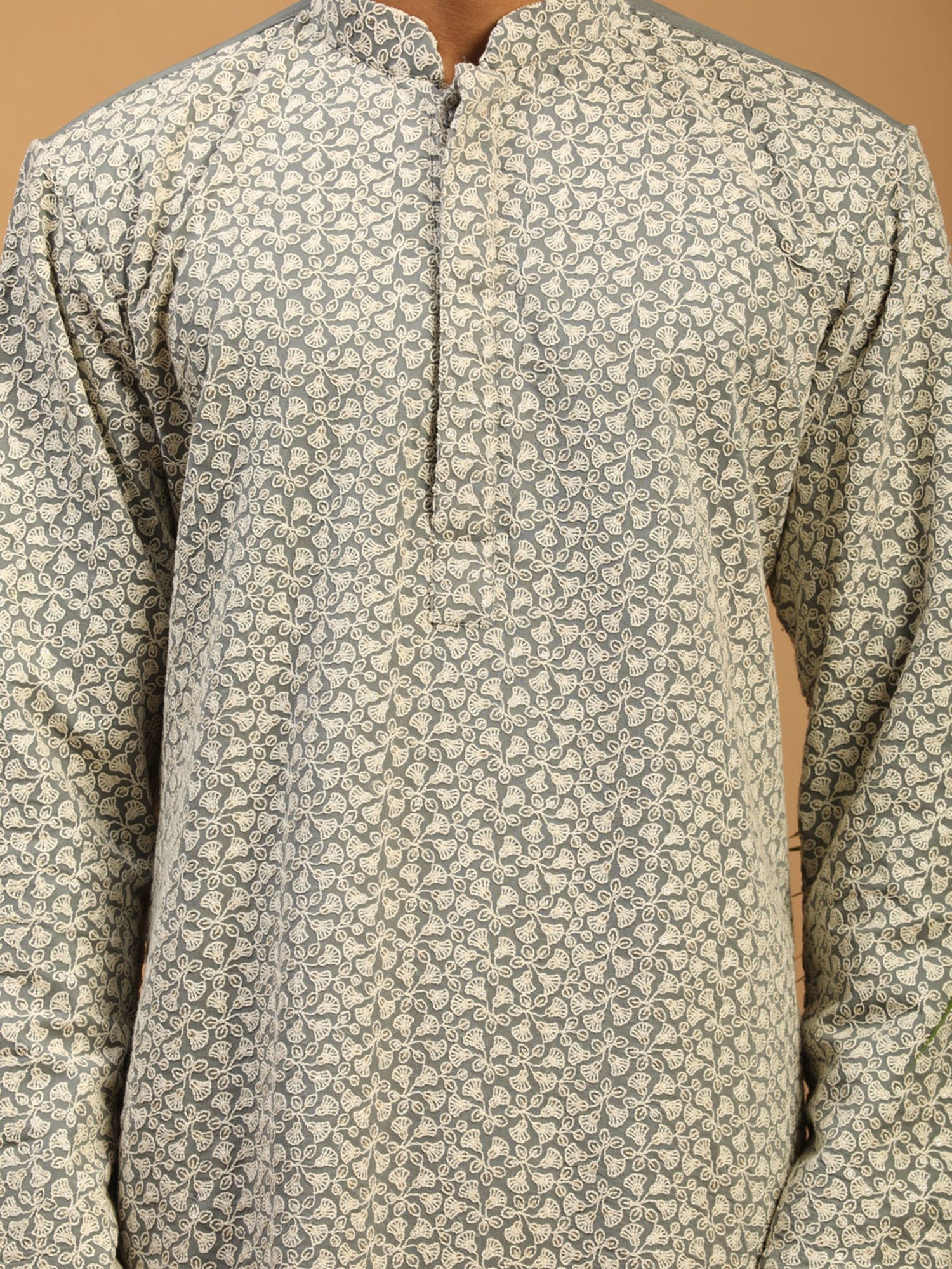 This Kurta is a breathtaking symphony of elegance and artistry. Crafted from the finest georgette fabric, it drapes like a whisper and caresses the skin with a gentle touch. Its intricate floral vine thread embroidery, delicately handwoven, transforms the Kurta into a masterpiece of craftsmanship. As you wear this kurta, you will feel like a canvas adorned with nature’s most exquisite blooms. The grey hue adds a touch of sophistication, while the embroidery brings the Kurta to life, weaving tales of enchanting beauty. It is not just clothing; it is a work of art, a tribute to the artistry of Indian fashion.