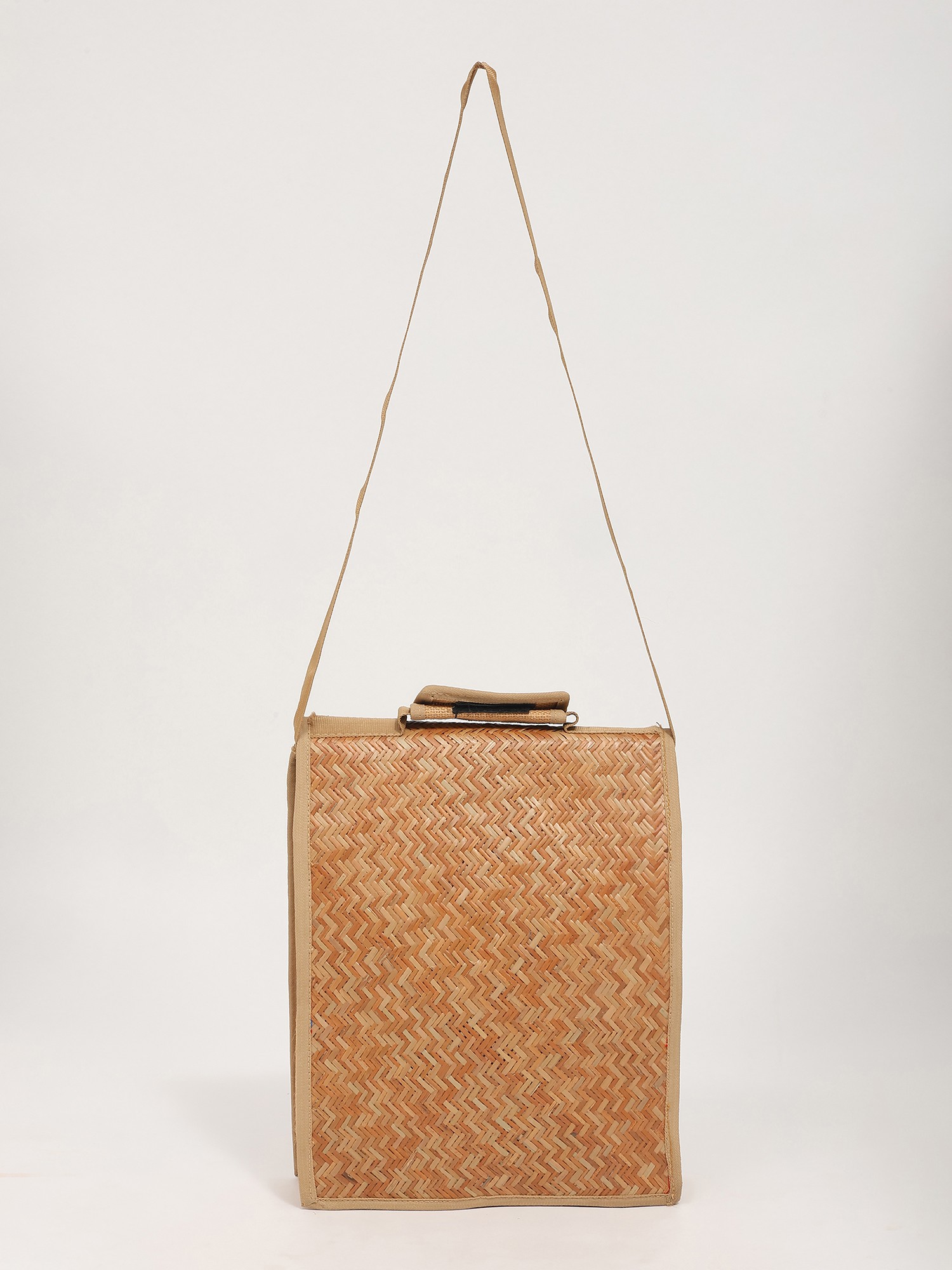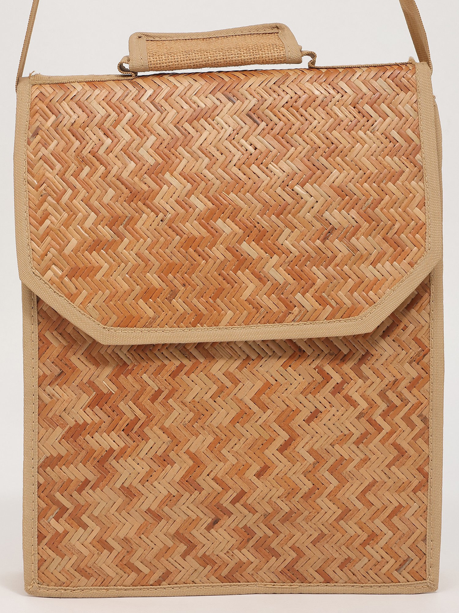 Handcrafted Bomboo Shoulder Bag with Dual Zip