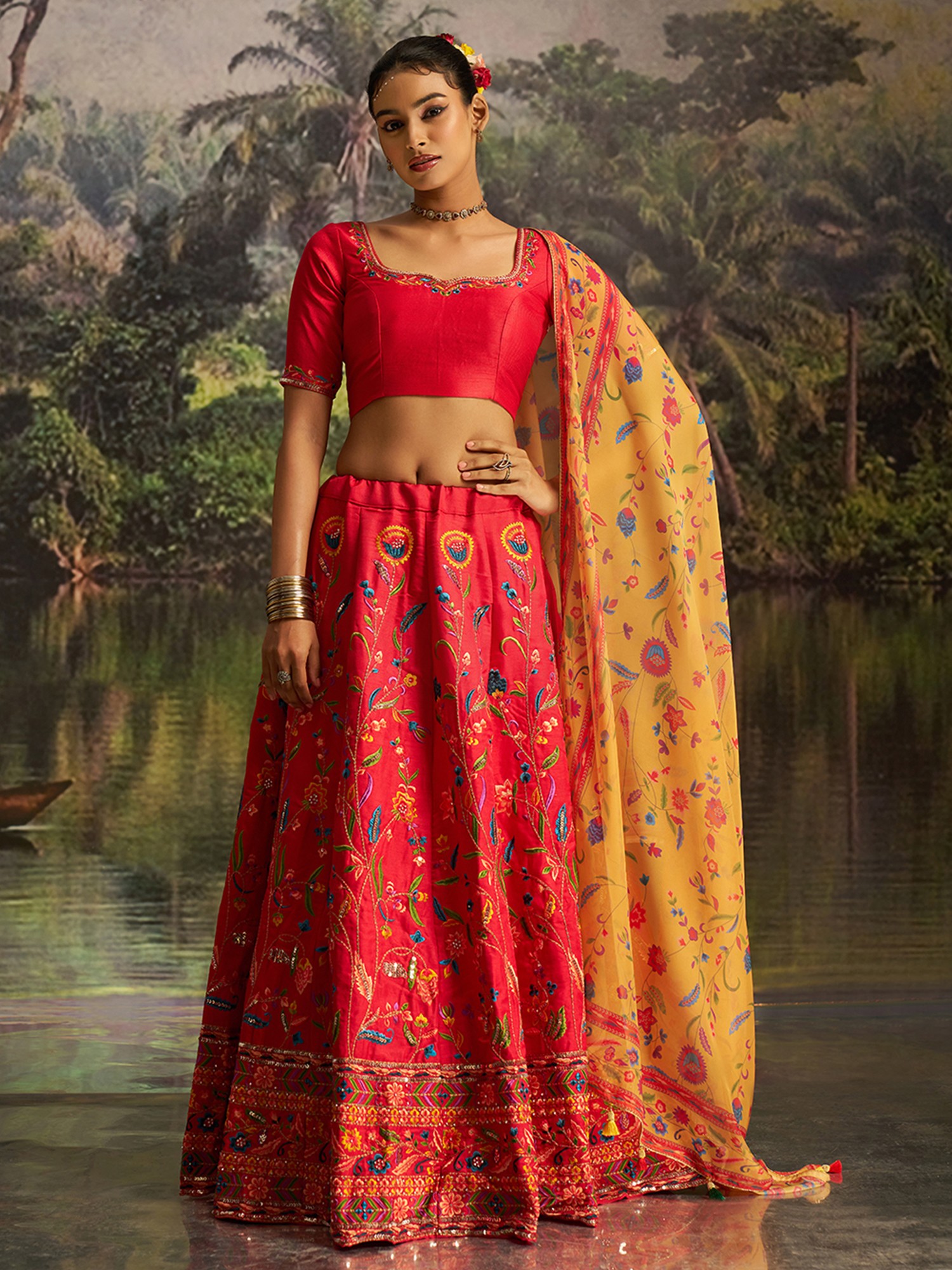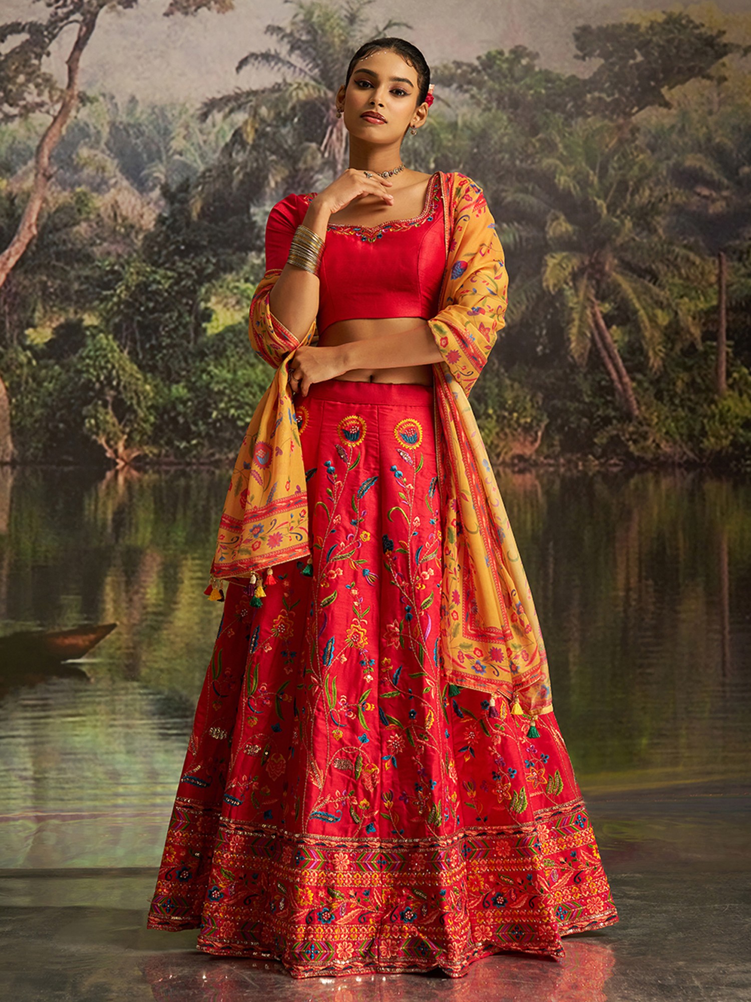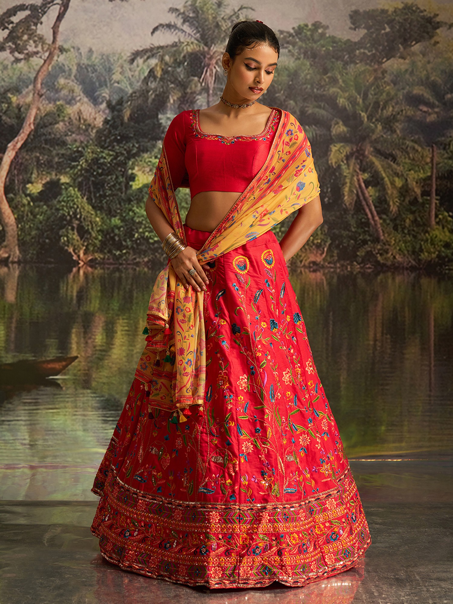 Zari And Embroidery Work Peacock Motifs Wedding Wear Silk Lehenga Choli With Dupatta