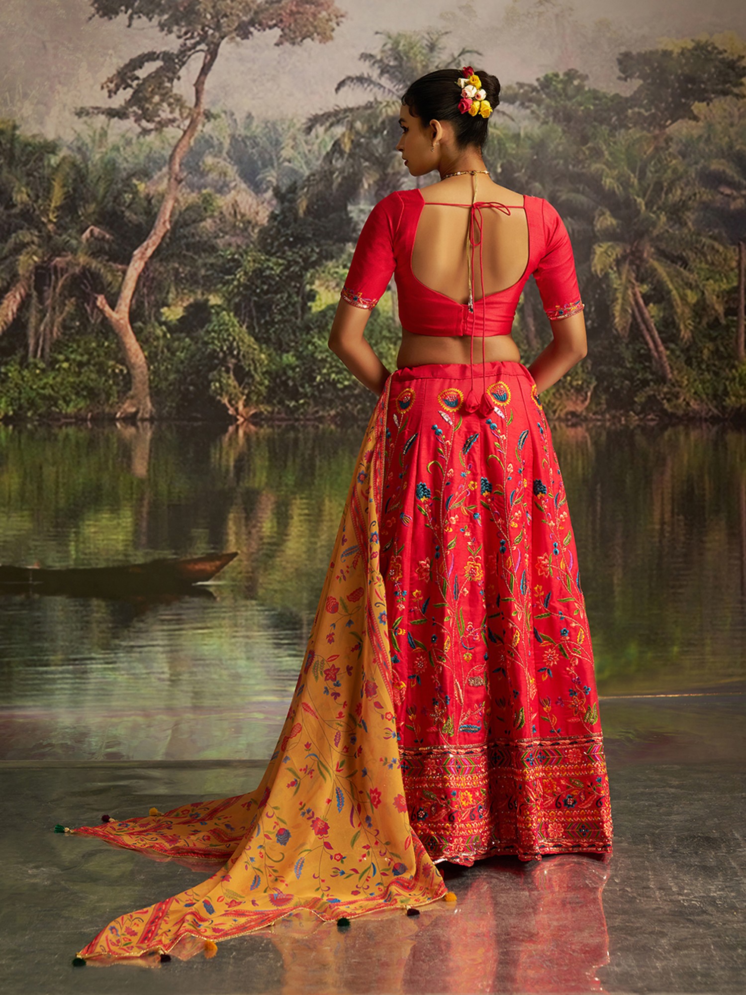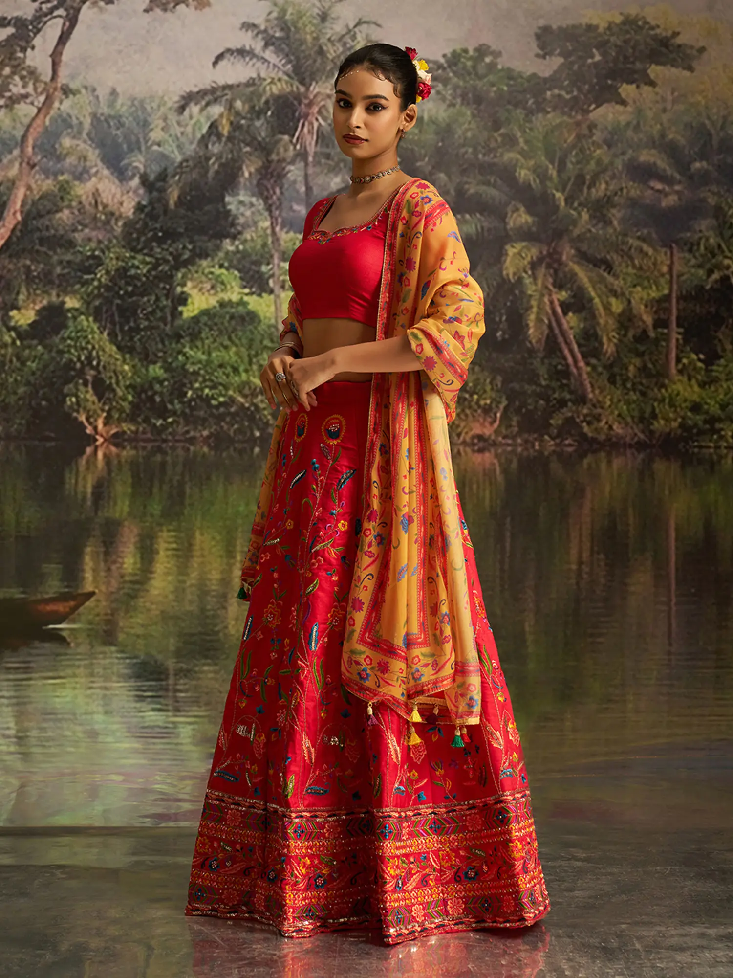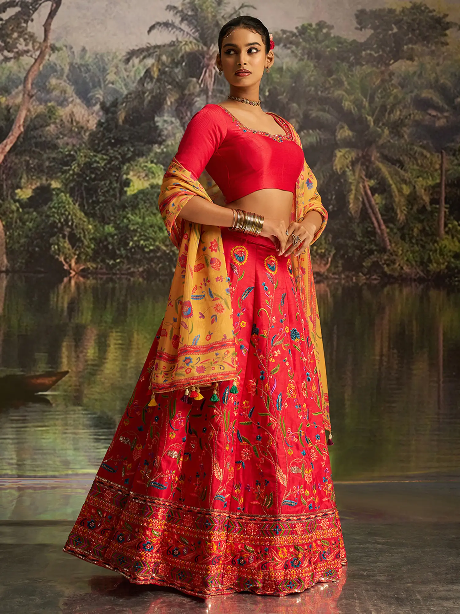 Zari And Embroidery Work Peacock Motifs Wedding Wear Silk Lehenga Choli With Dupatta