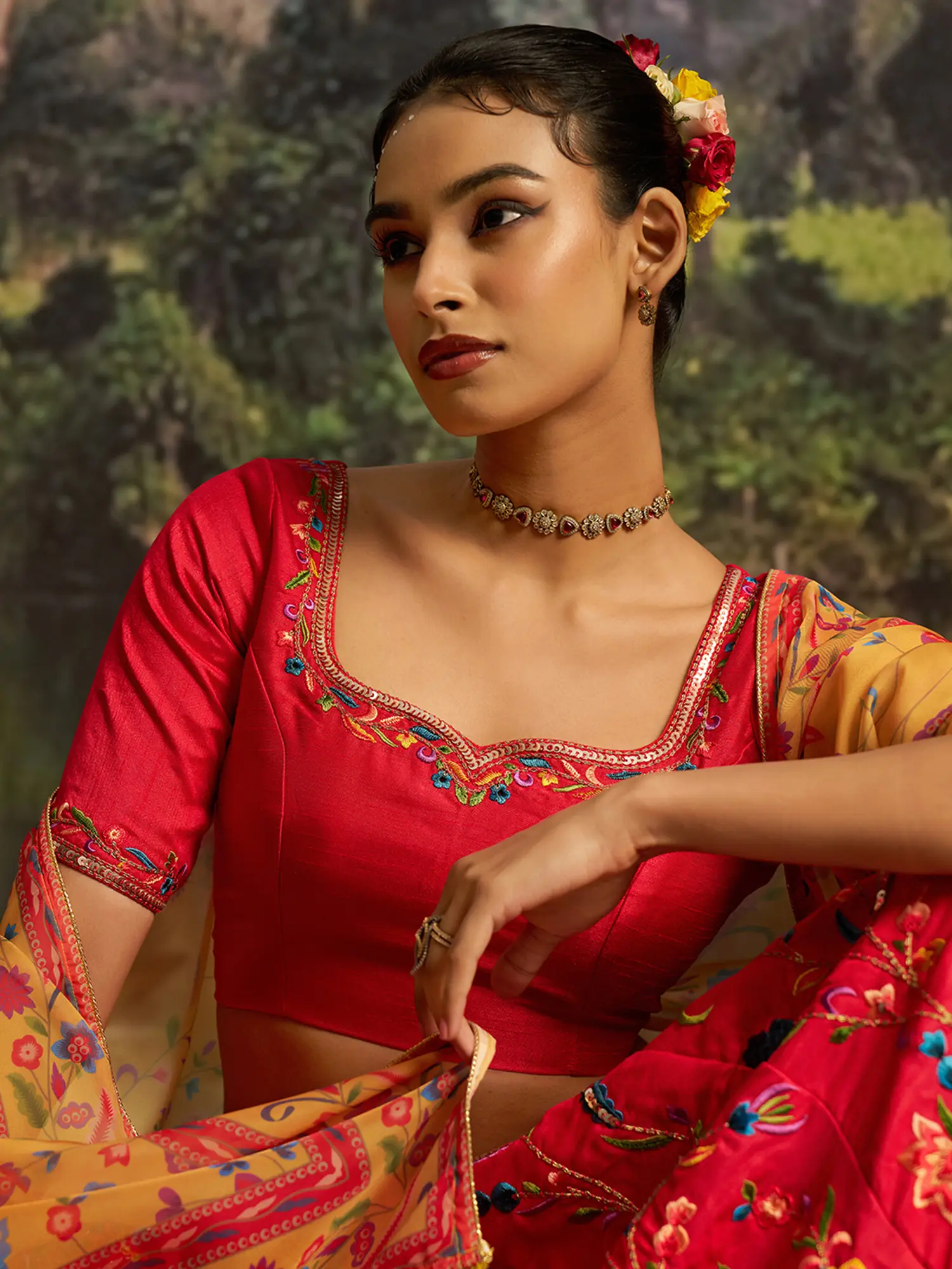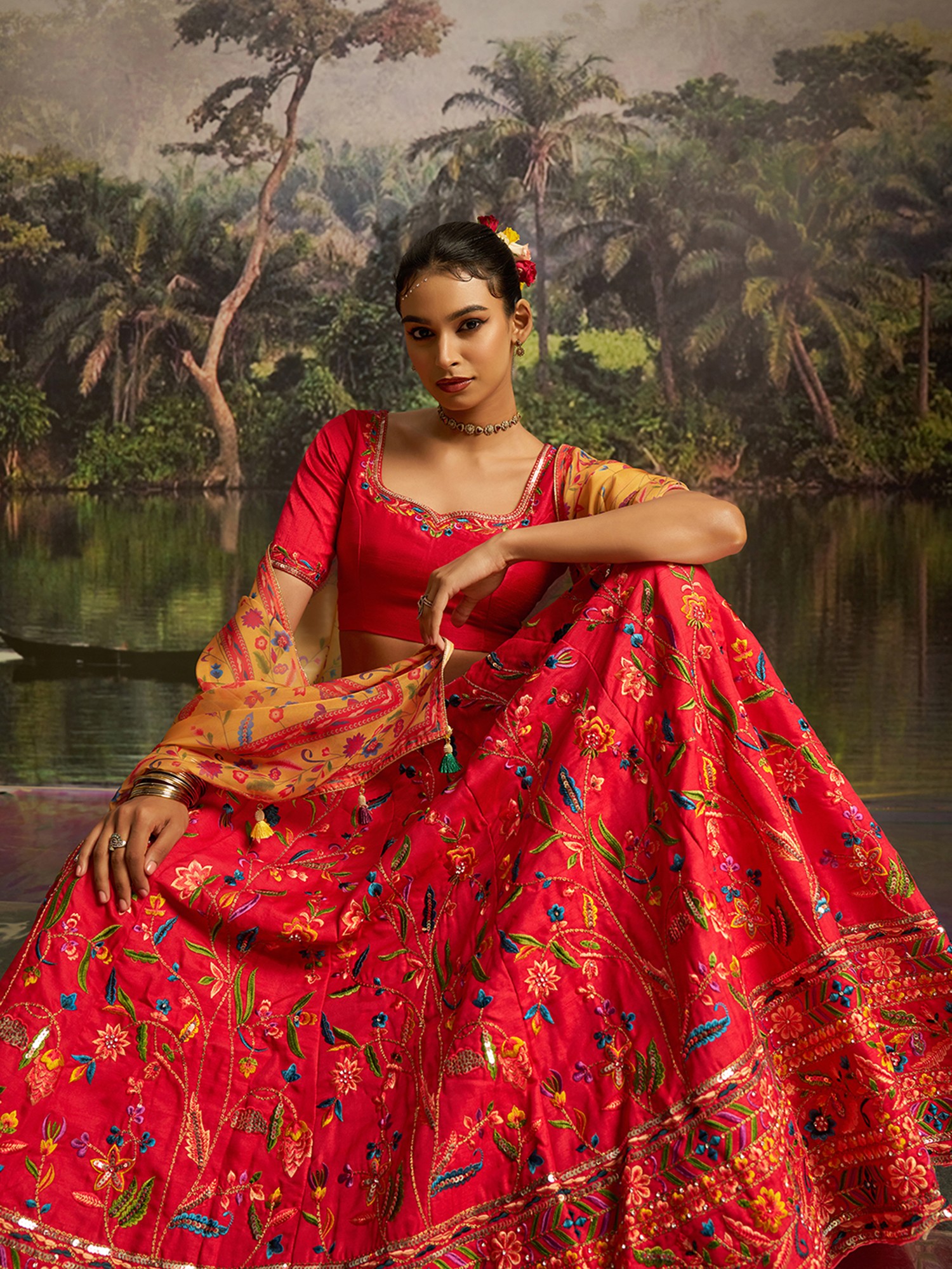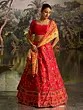 Wine-Berry Golden Embroidered And Sequins Work Floral Fancy Viscose jacquard Silk Lehenga Choli With Attractive Dupatta