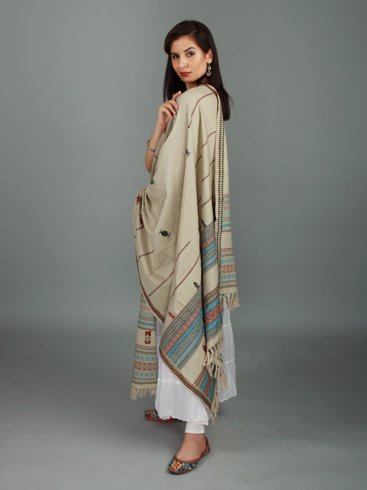 This Handloom Shawl from Manipur with Traditional Motifs is a masterpiece of heritage and craftsmanship. Woven with exquisite precision, this shawl is crafted using Eri silk, sourced from the lush forests of Manipur. The traditional motifs, passed down through generations, tell stories of the region's rich culture. The intricate patterns reflect the artistry of skilled Manipuri artisans, who have meticulously perfected their craft. These shawls have a historical legacy dating back centuries, preserving the essence of Manipur's artistic heritage. Today, they seamlessly blend with modern fashion trends, making them a timeless accessory. The vibrant colors and silky texture make it a luxurious addition to any wardrobe.