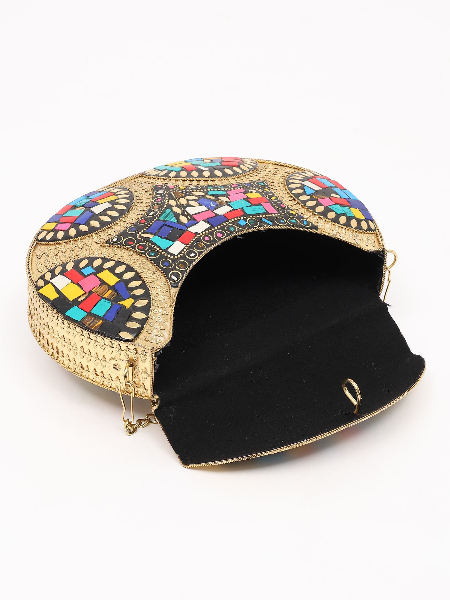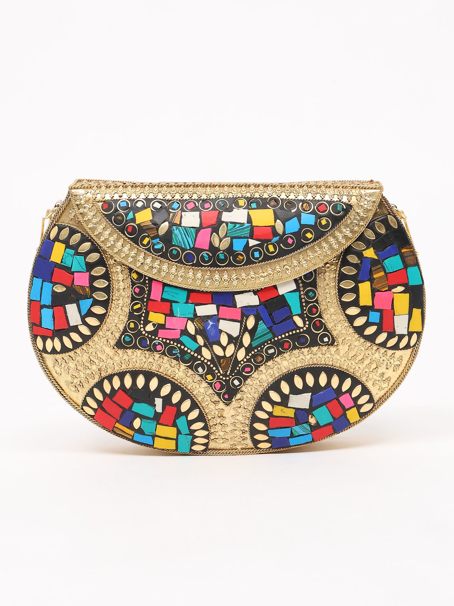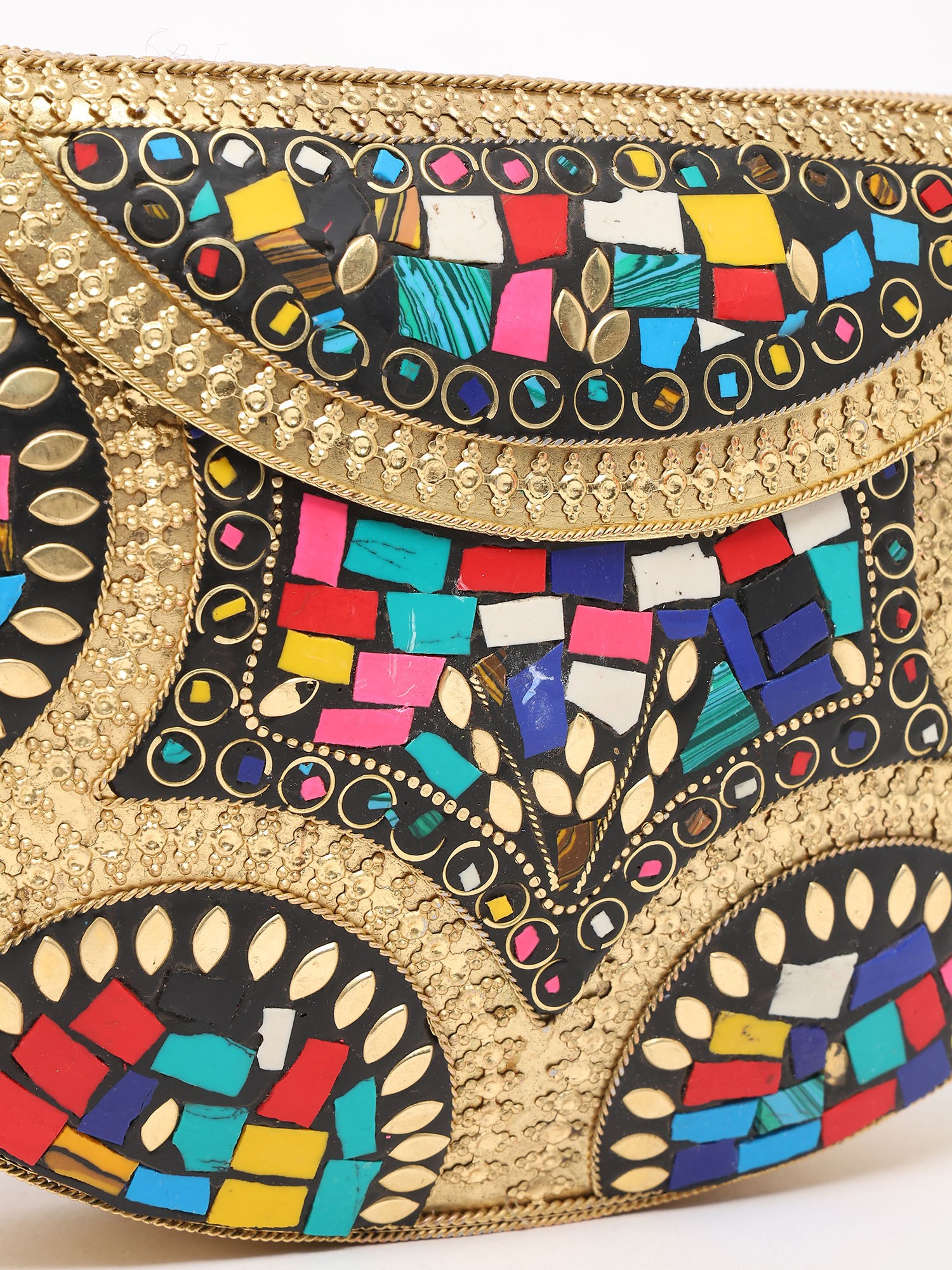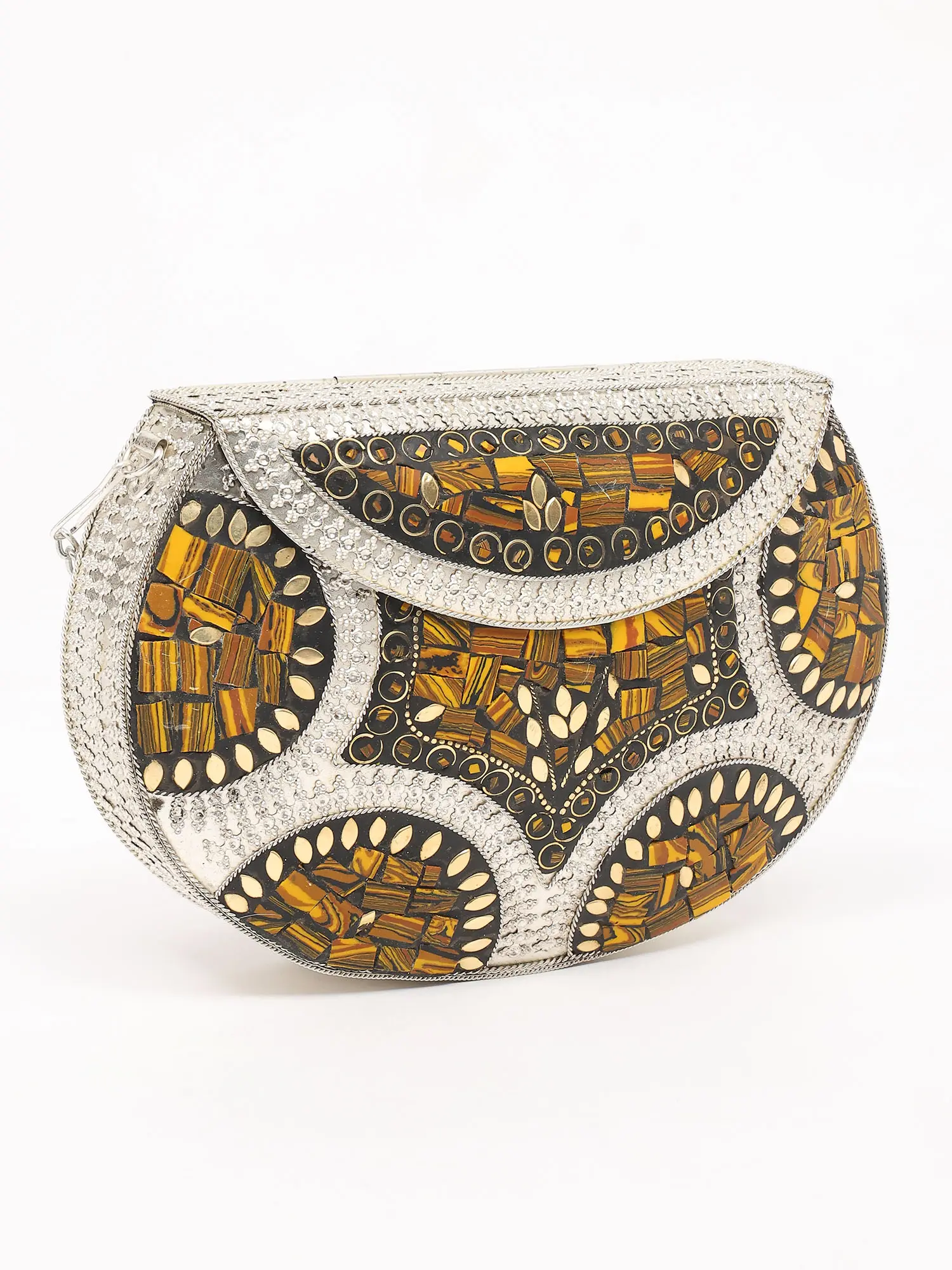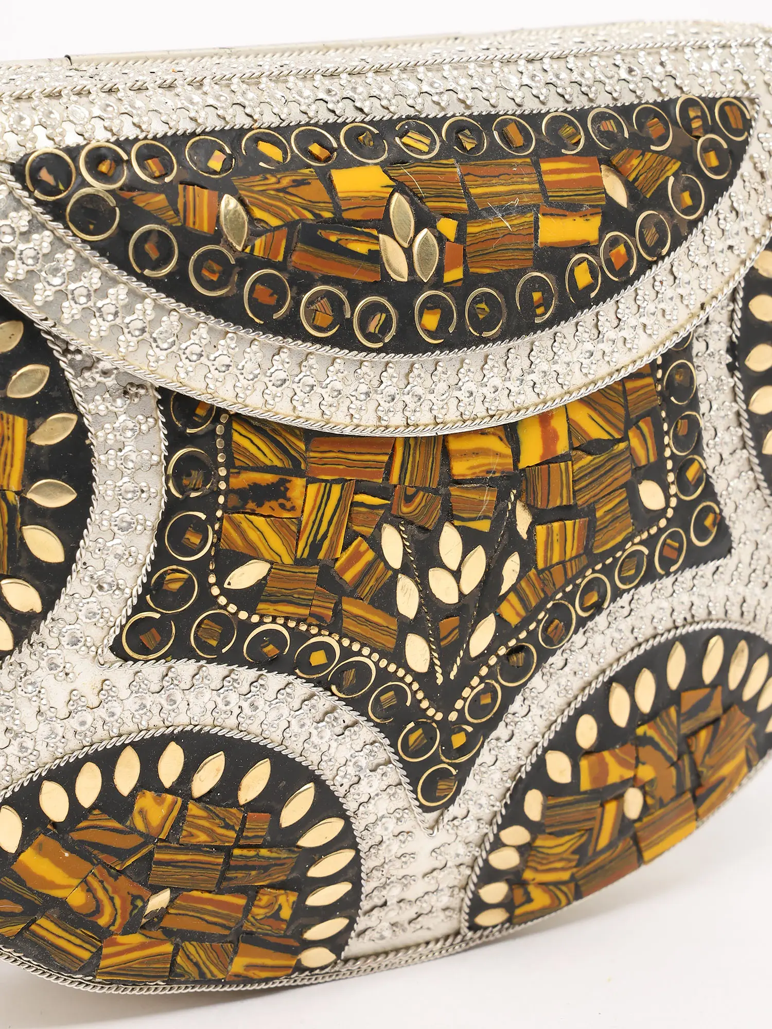 Handmade Metal Clutch Bag with Mosaic Stone work with Detachable Chain Strap