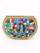 Handmade Multicolor Mosaic Stone Clutch Hand Bag with Chain Strap