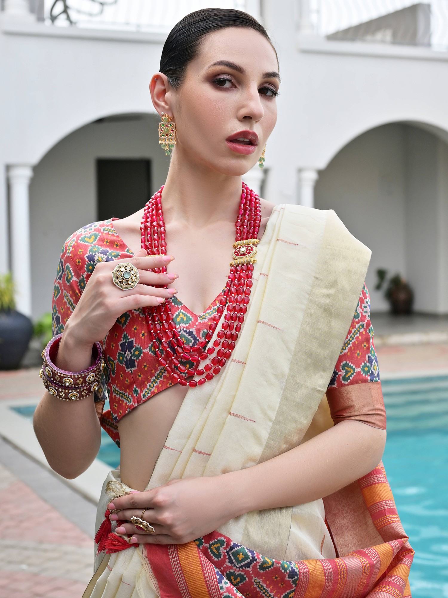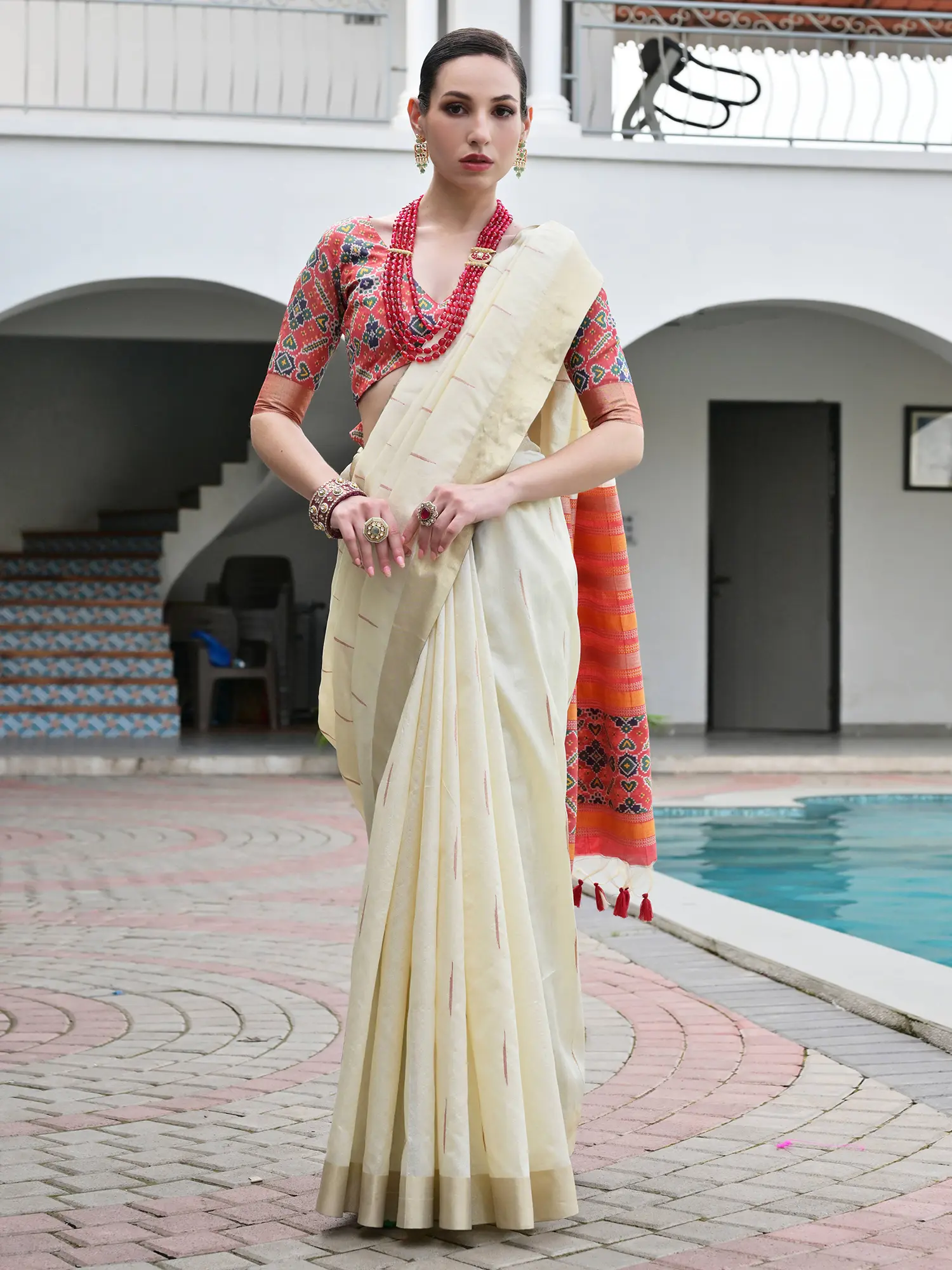 Cotton Ikat Saree from Sambhalpur with Woven Border