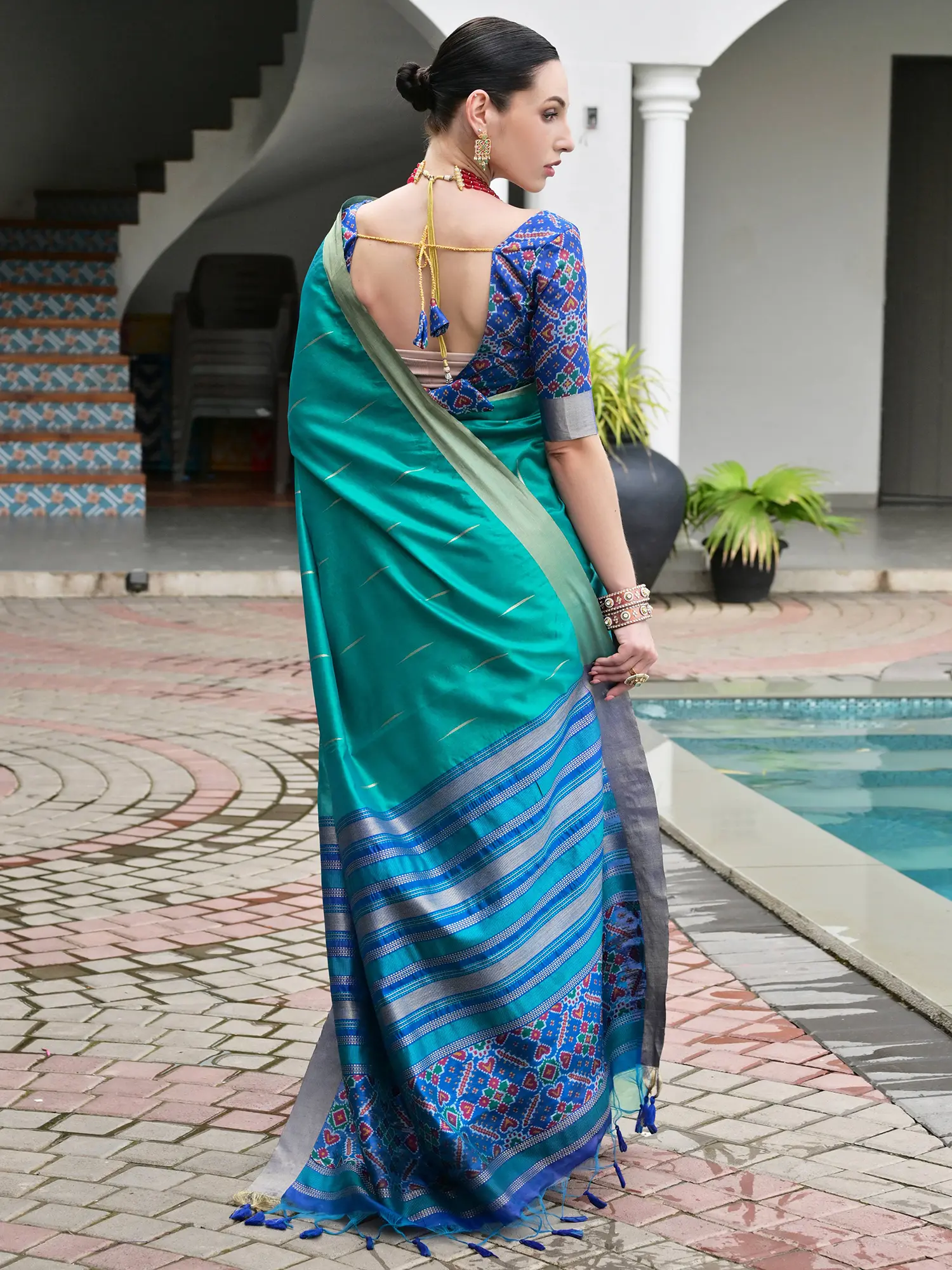 Burnt-Sienna Iridescent Dhoop Chaanv Pure Silk Handloom Patan Patola Saree with All-over Ikat Weave