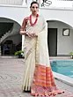 Matte-Black Kani Polyester Floral Design Saree with Floral Border and Shawl
