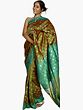 Harvest-Gold and Green Banarasi Sari with Woven Paisleys All-Over