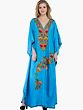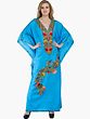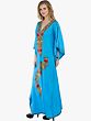 Hawaiian-Ocean Long Kashmiri Kaftan with Aari Hand-Embroidered Flowers
