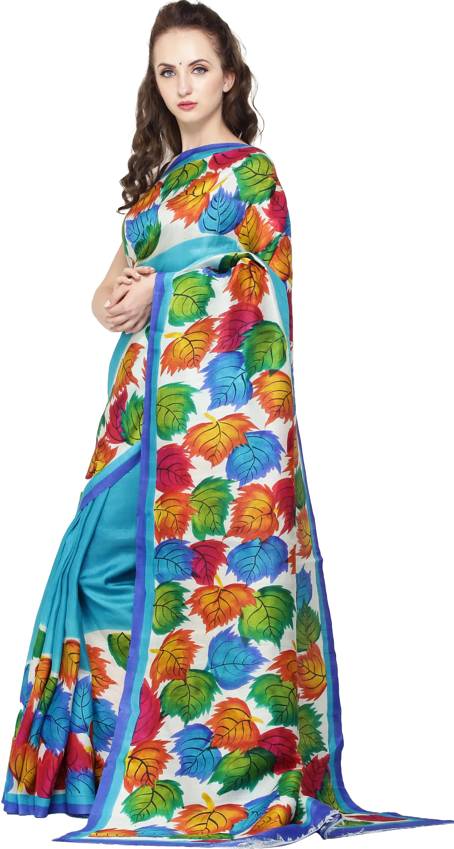 The Hawaiian-Ocean Printed Saree from Kolkata is a celebration of nature's beauty on fabric. Its silken field, reminiscent of the tranquil Hawaiian ocean, serves as a canvas for vibrant, multi-color leaves that adorn the border and pallu. These leaves breathe life into the saree, adding a touch of nature's charm to any occasion. This saree is a versatile masterpiece that effortlessly transitions from casual gatherings to formal events, draping you in the allure of tropical paradise wherever you go. With its colorful leaves and soothing hues, it's a timeless choice that brings the essence of nature's elegance to your wardrobe.